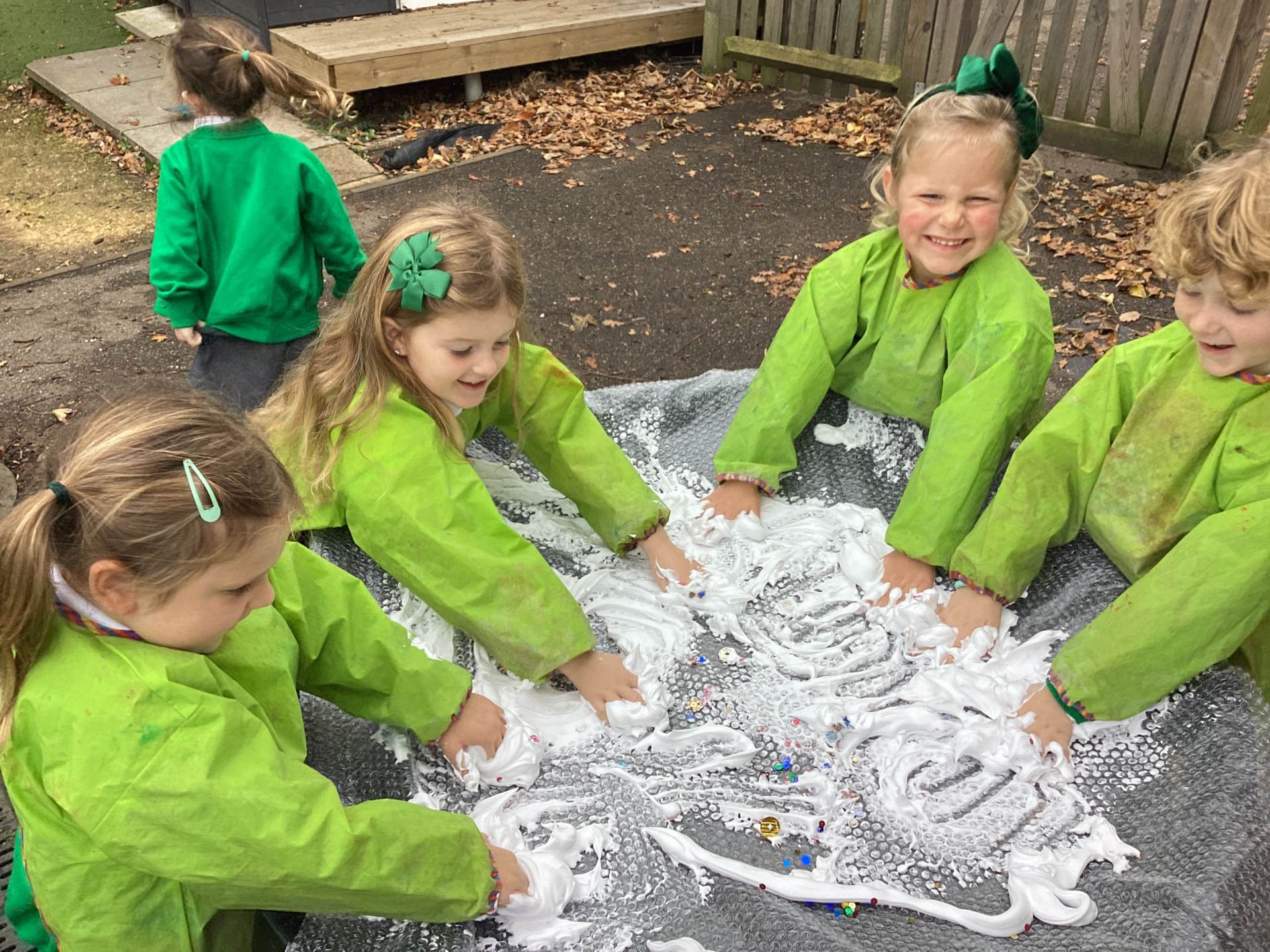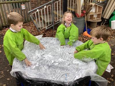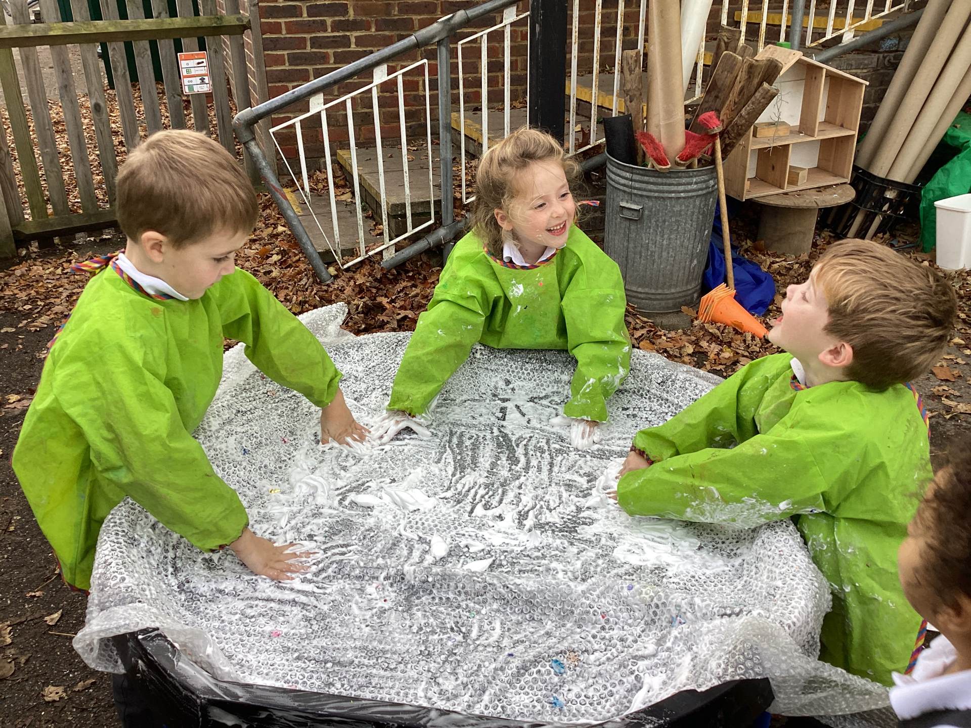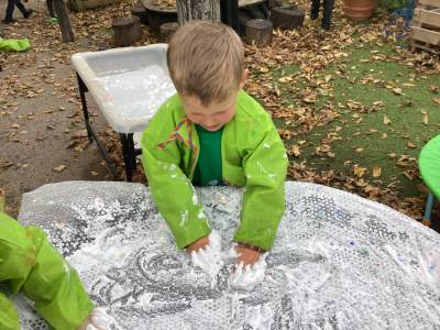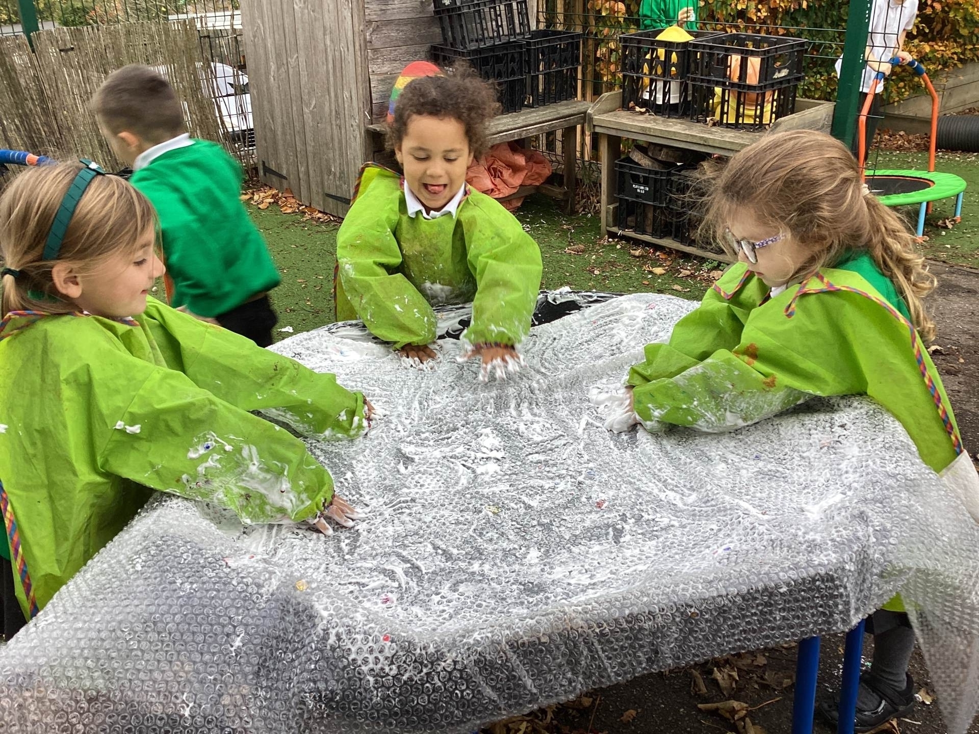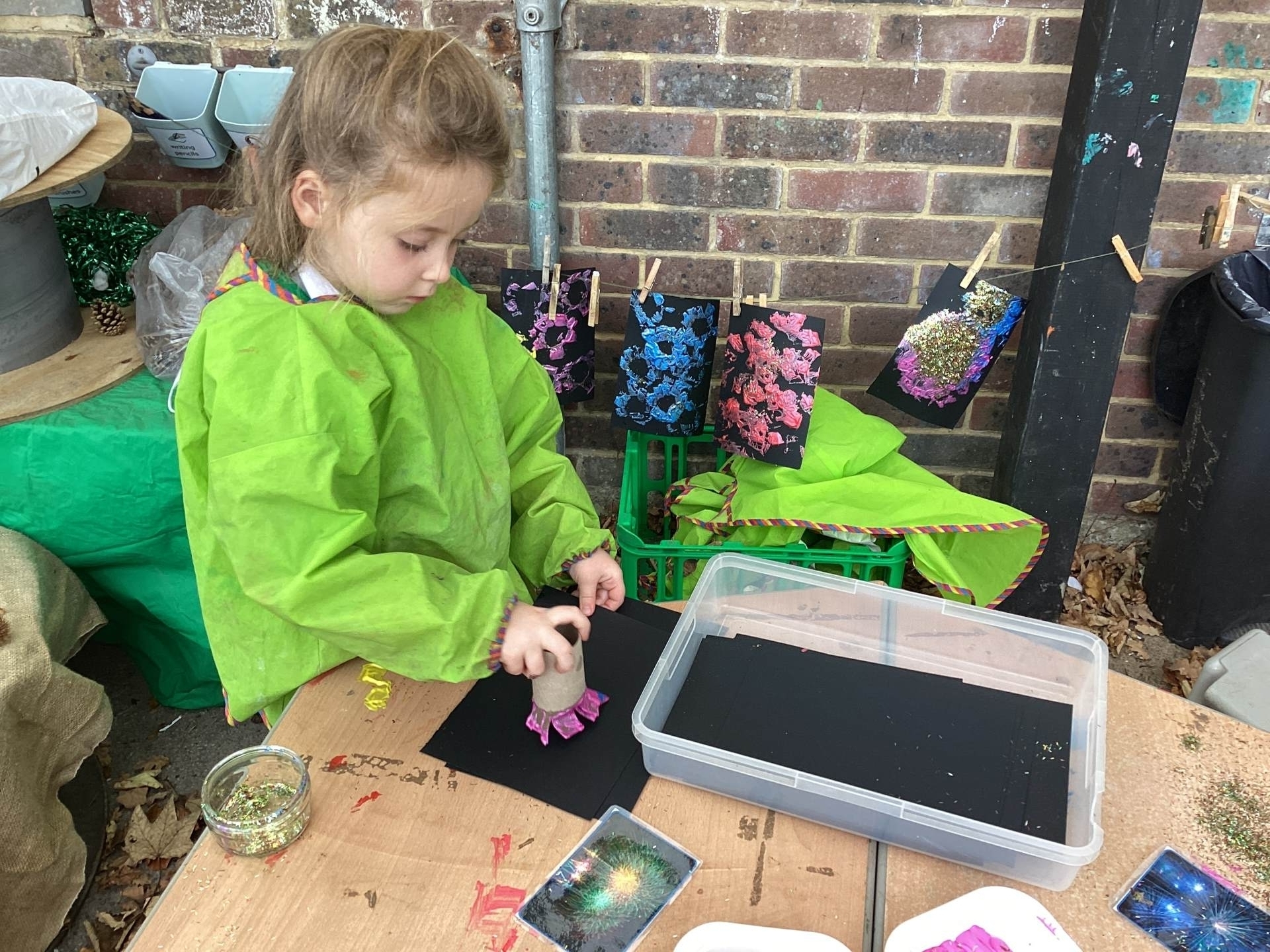 In our outside area we continued the firework fun, including a sensory activity involving bubble wrap and shaving foam, where children could recreate the pop, crackle and bang noises of fireworks!