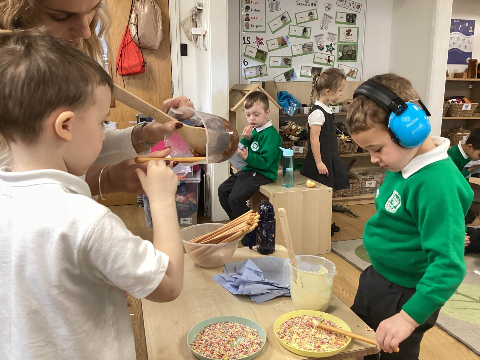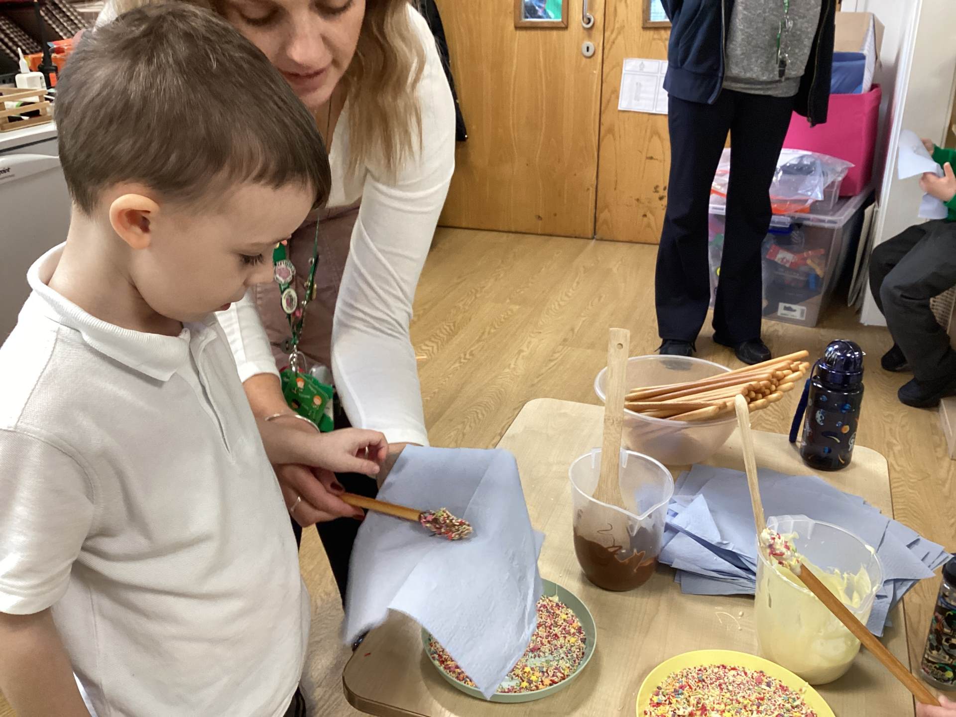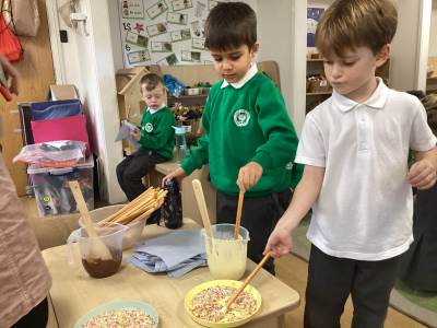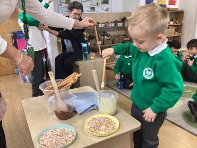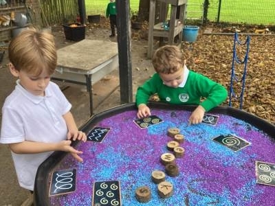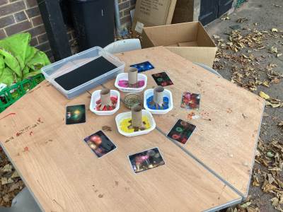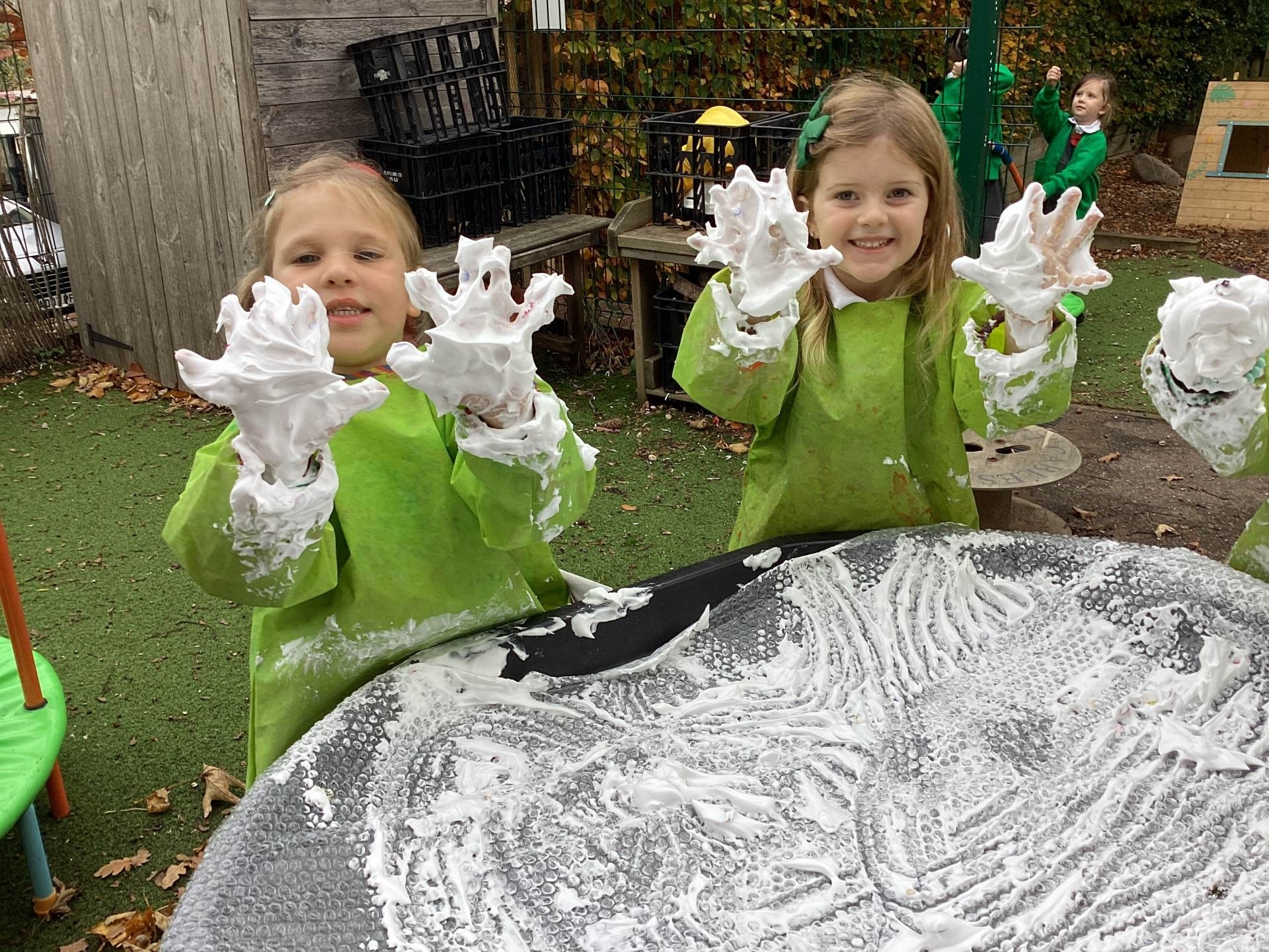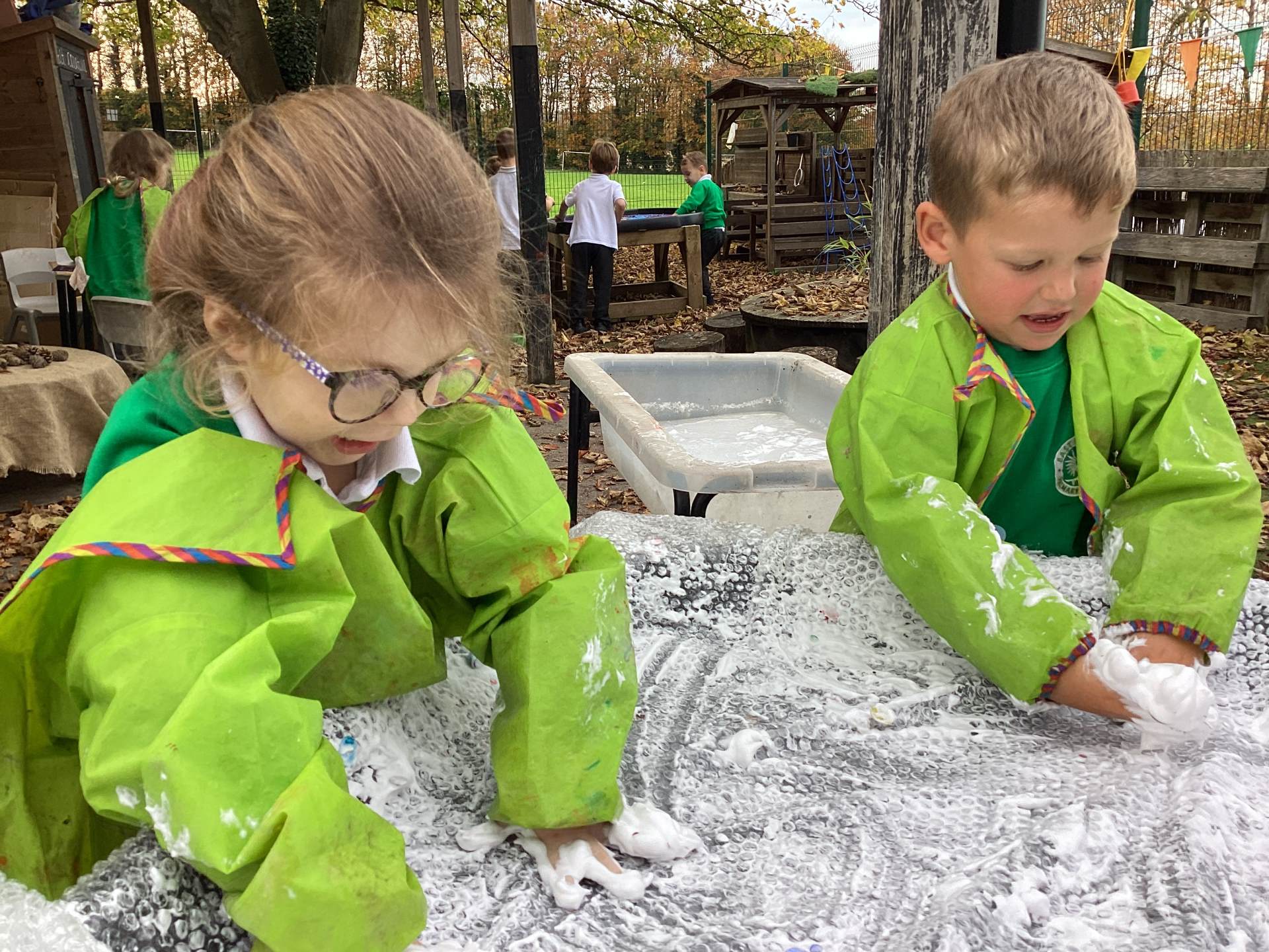 In our outside area we continued the firework fun, including a sensory activity involving bubble wrap and shaving foam, where children could recreate the pop, crackle and bang noises of fireworks!