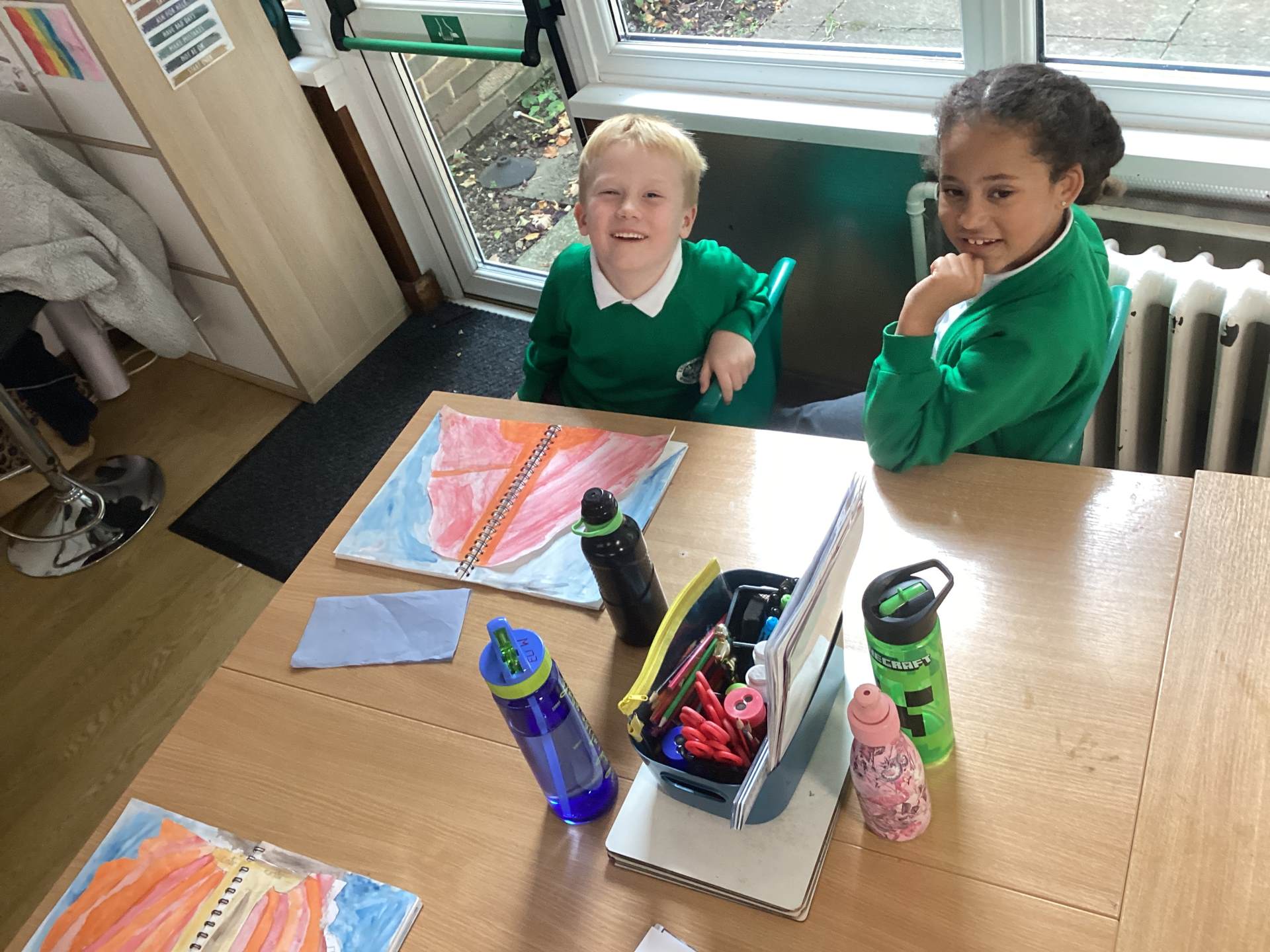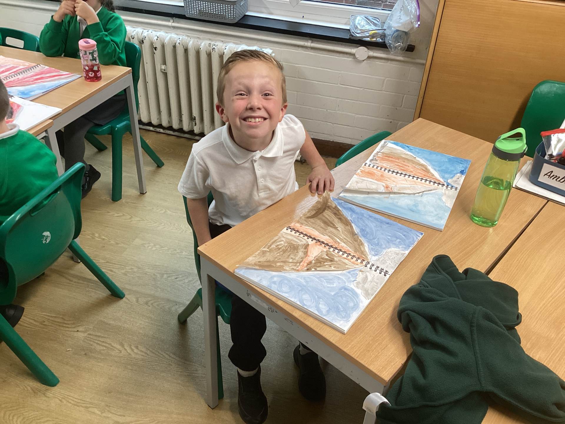 This week, Year 3 have been learning about the structure and types of different volcanoes. We have been making some beautiful volcano factfiles in our journals, which we painted today. Aren't they looking great?