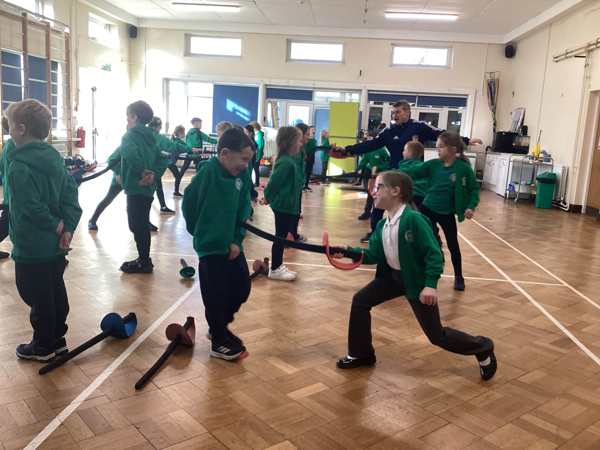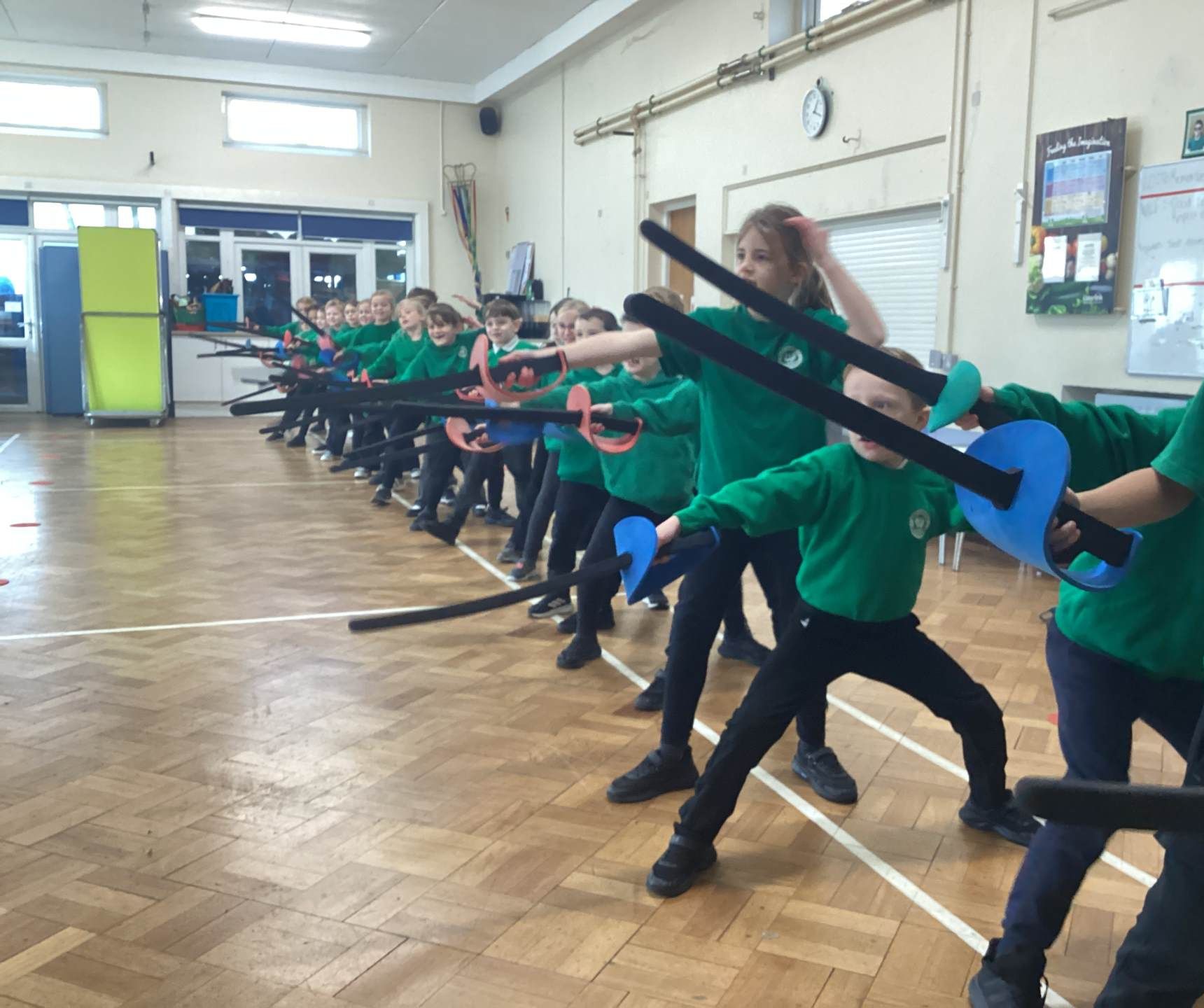 We had a lovely afternoon today with our FitFencing workshop! It was a fantastic introduction to the sport which gave the children the chance to learn and practise the basic movements in a fun and engaging way. We were taught how to stand in the correct fencing stance, move forwards and backwards with control, and use simple attack and defence actions. The session was active and well-structured, with clear demonstrations that helped the children feel confident and excited to try each skill. By the end of the workshop, the class showed great progress and enthusiasm, making it an enjoyable and memorable experience for everyone! Here are some of the things that we learnt: