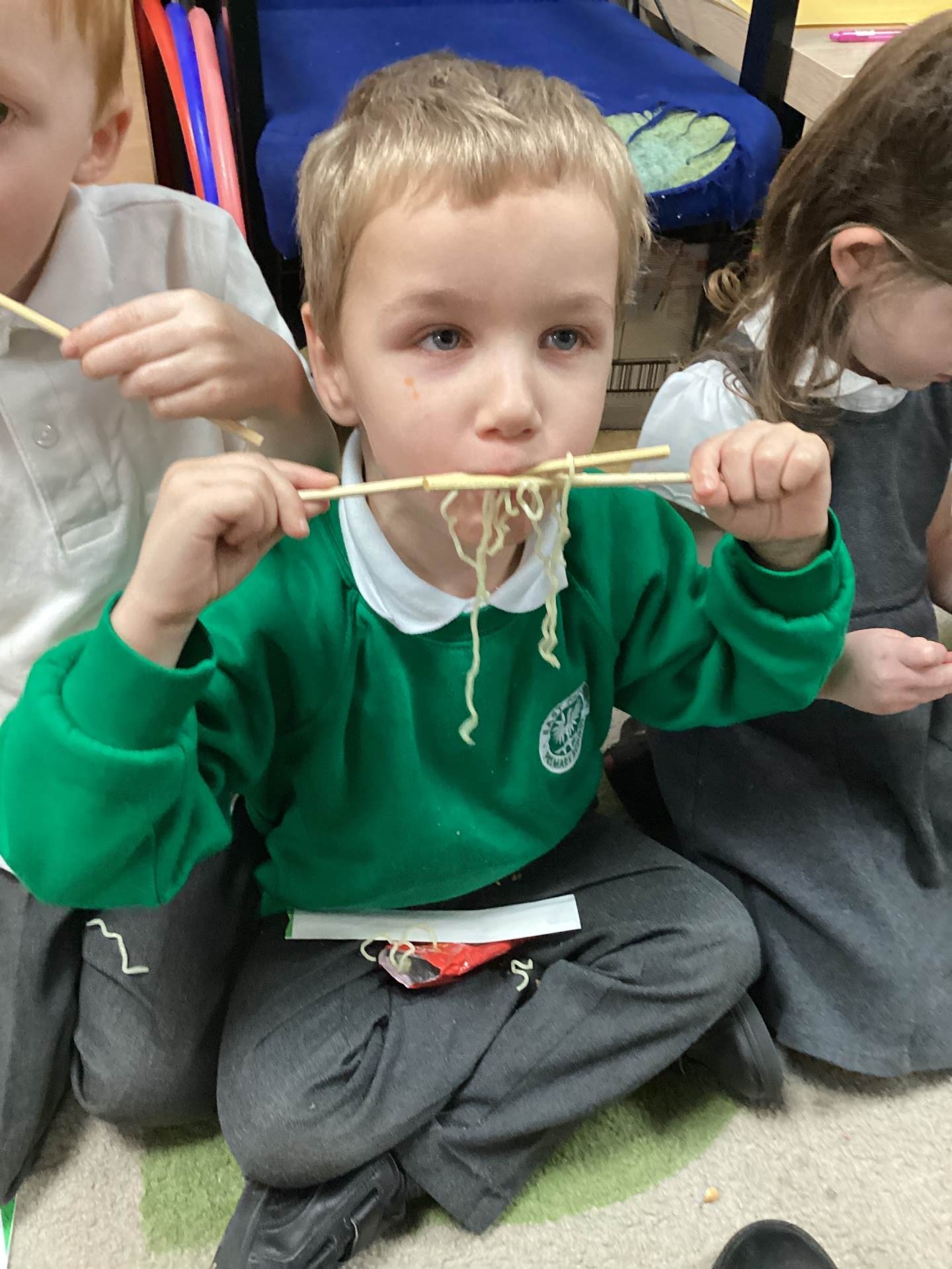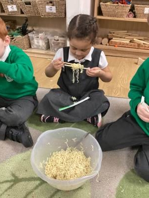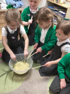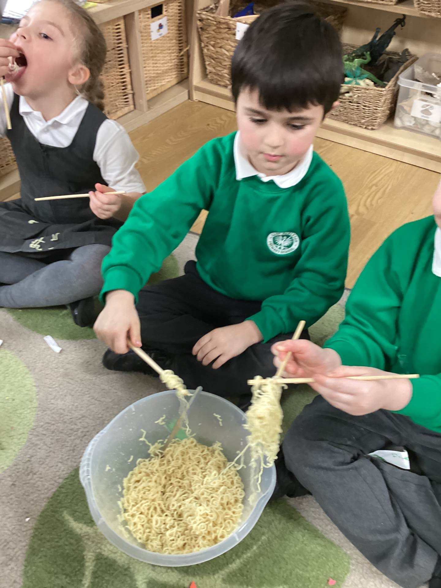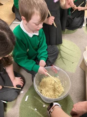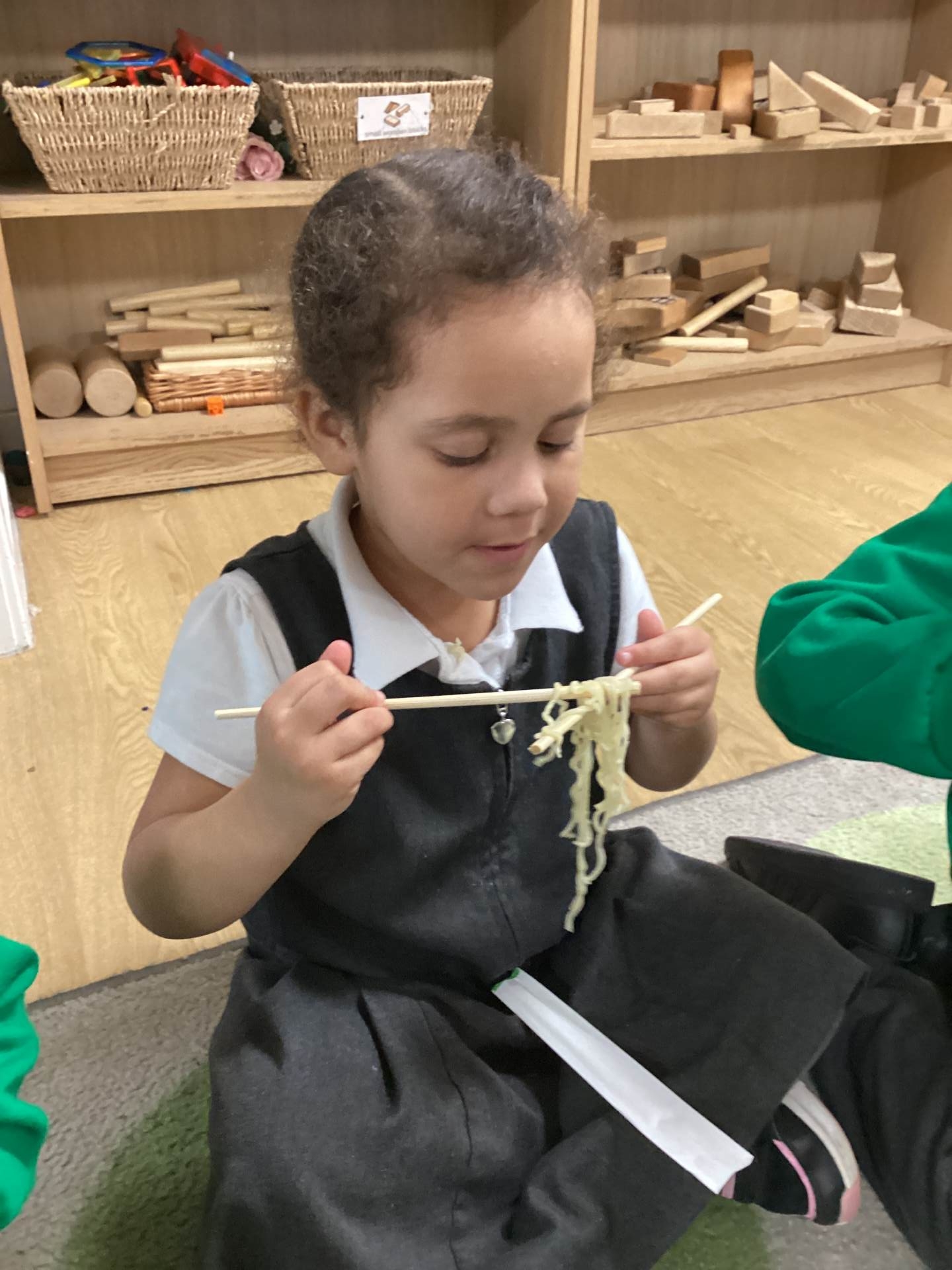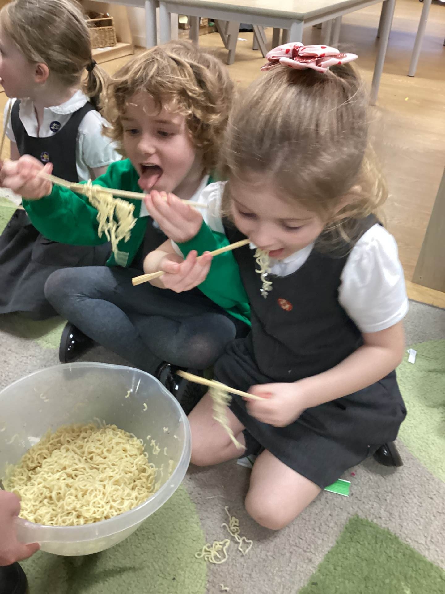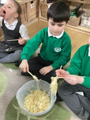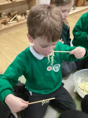 The class especially enjoyed learning about Chinese food. We talked about special dishes that families share during celebrations and even tried some new flavours together, the children particularly enjoyed opening their own fortune cookies and seeing what their fortune was. The children were very adventurous and excited to taste foods they had not tried before such as chilli crackers, noodles and fortune cookies.