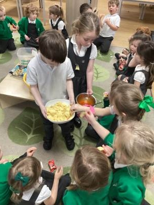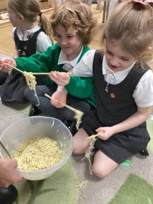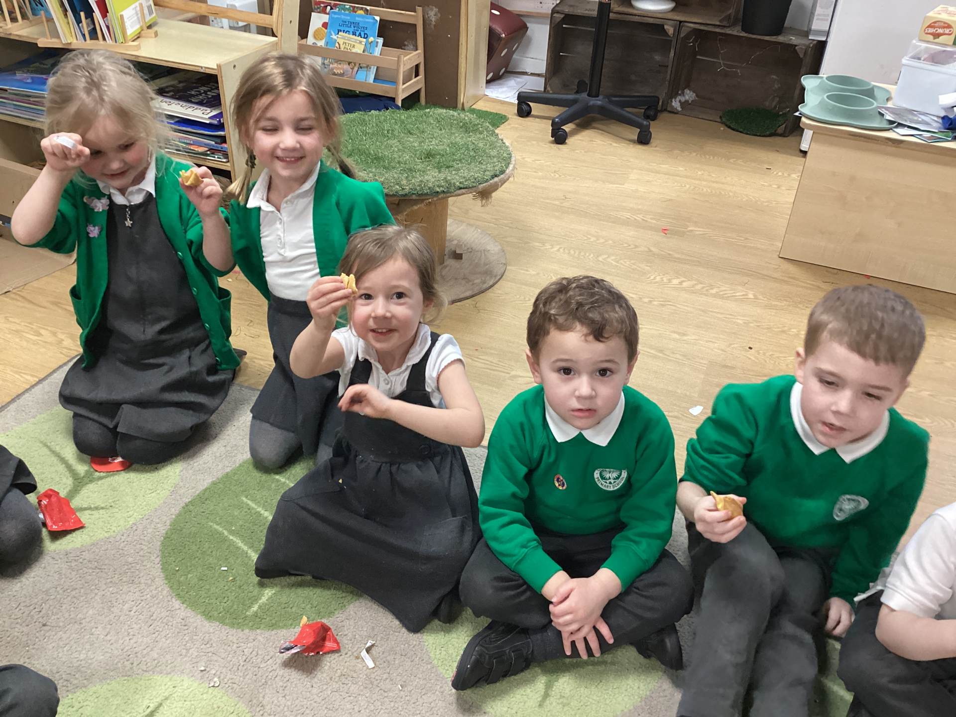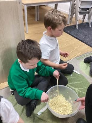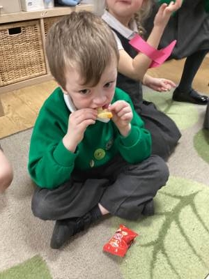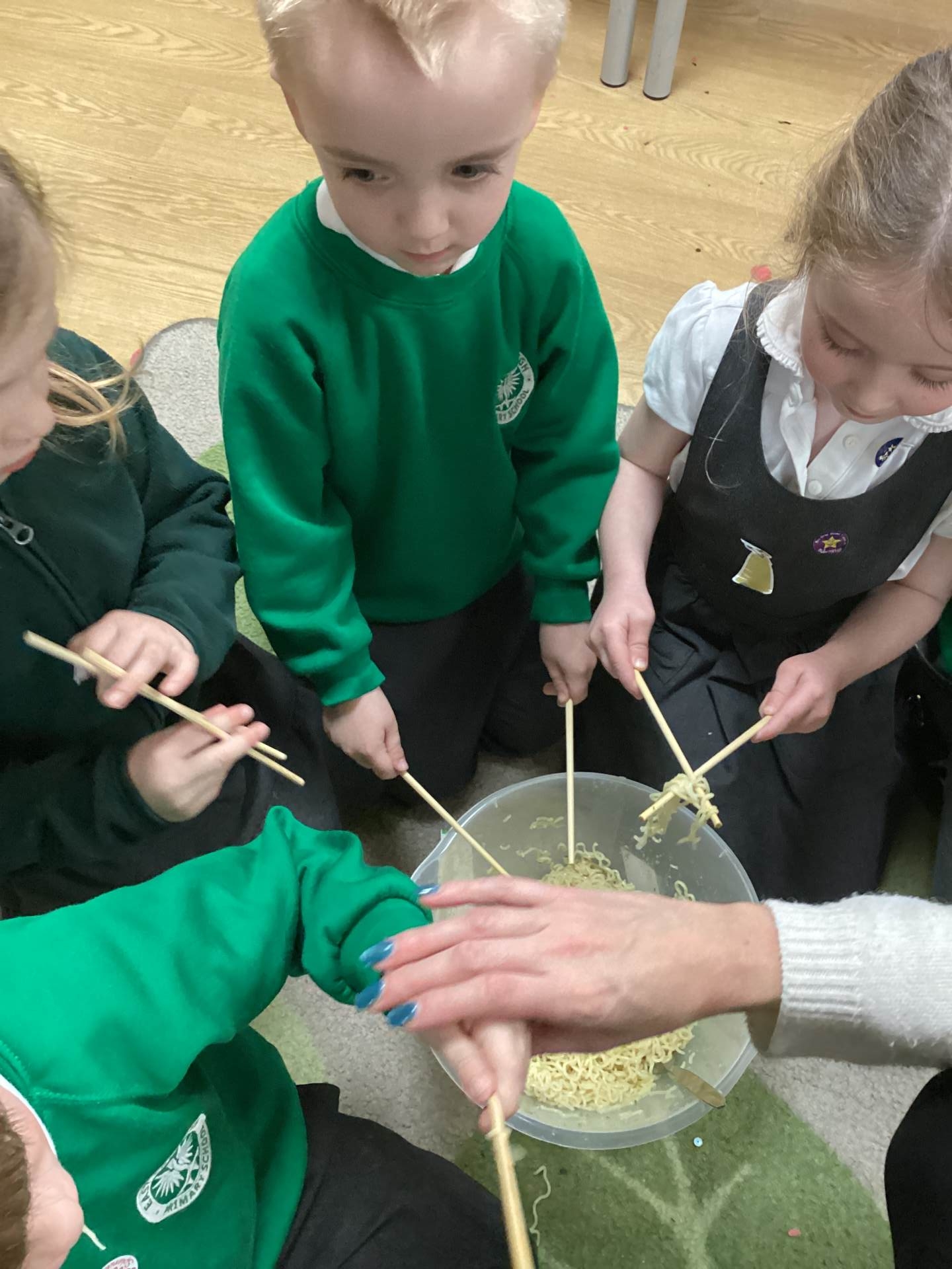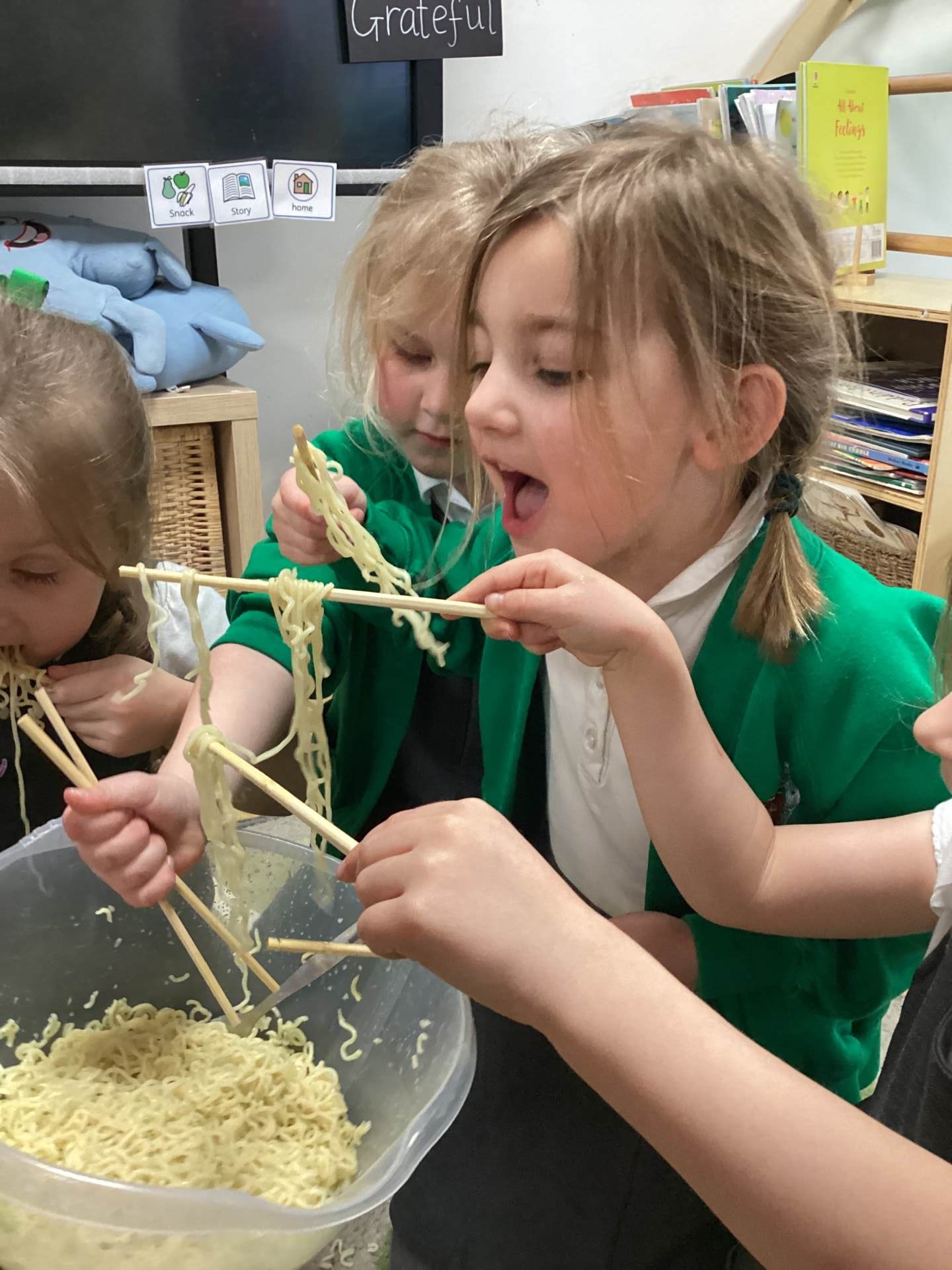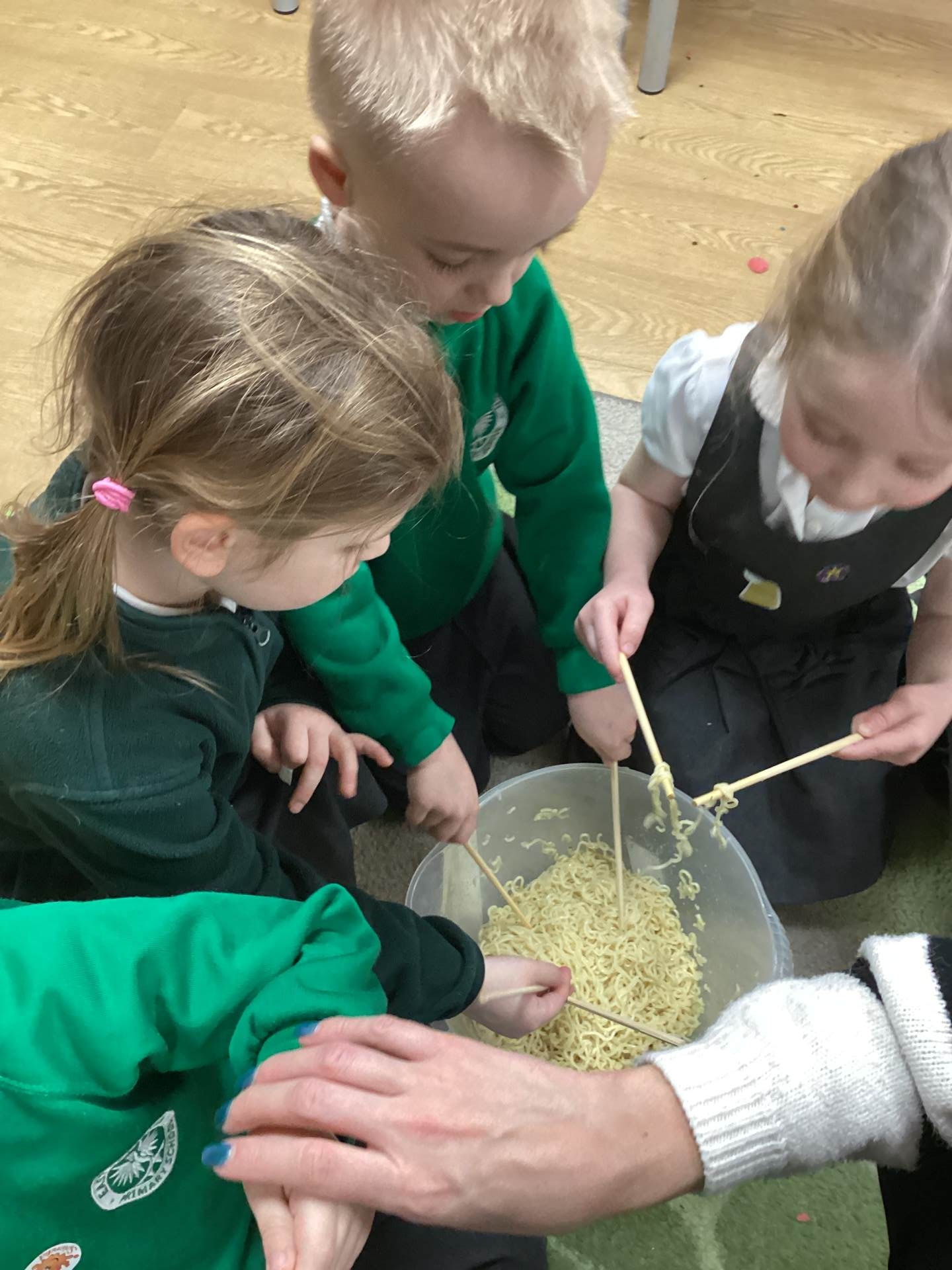 The class especially enjoyed learning about Chinese food. We talked about special dishes that families share during celebrations and even tried some new flavours together, the children particularly enjoyed opening their own fortune cookies and seeing what their fortune was. The children were very adventurous and excited to taste foods they had not tried before such as chilli crackers, noodles and fortune cookies.