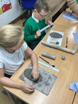 Our exploration of Islamic Art has seen us produce some stunning Islamic inspired tiles this week. We further developed our clay skills, from Year 3, by using slip to help smooth and glue elements together.