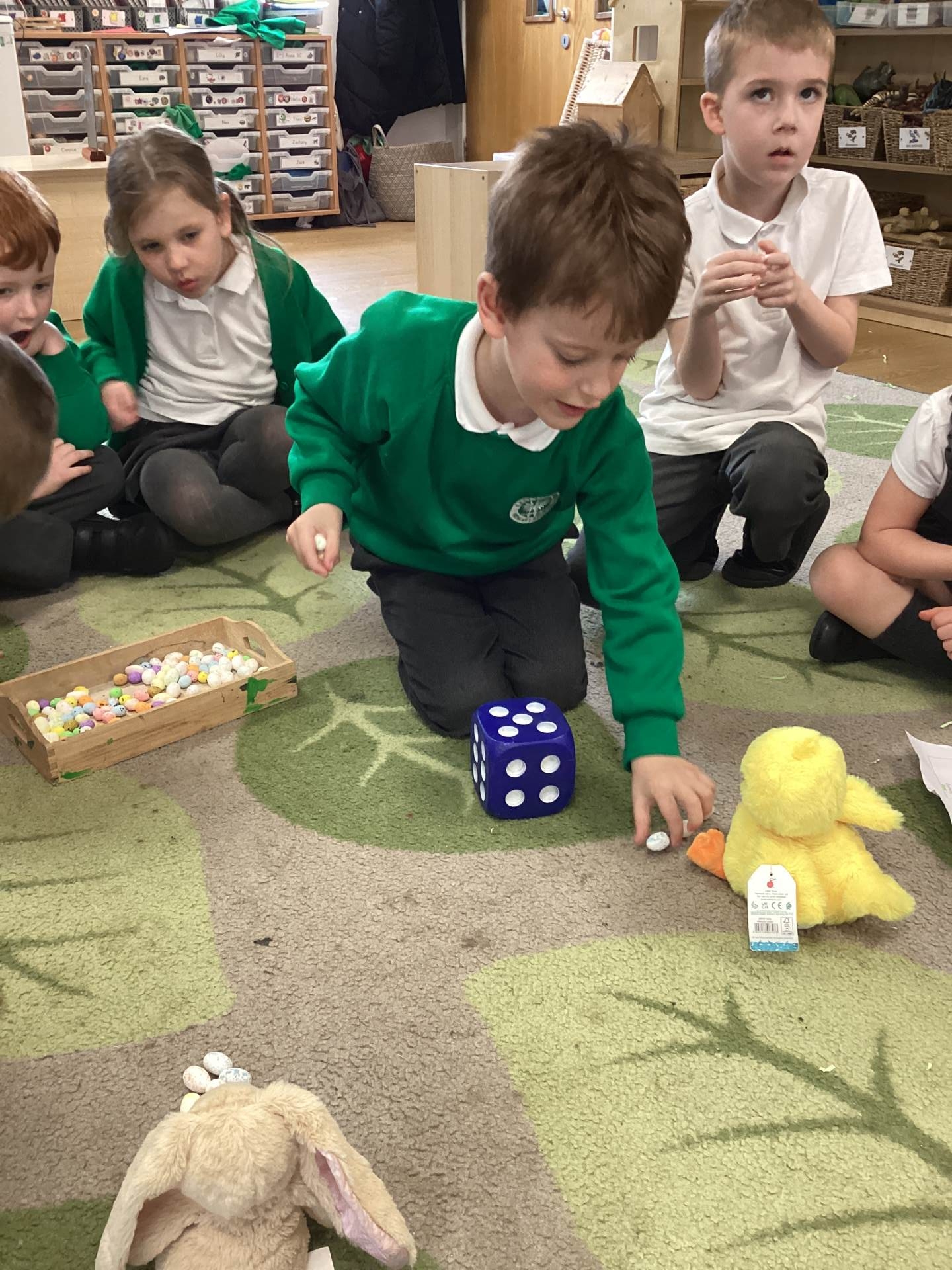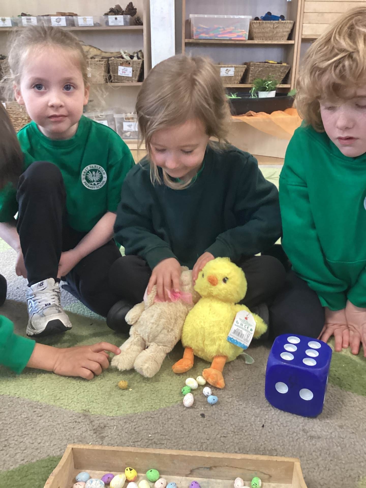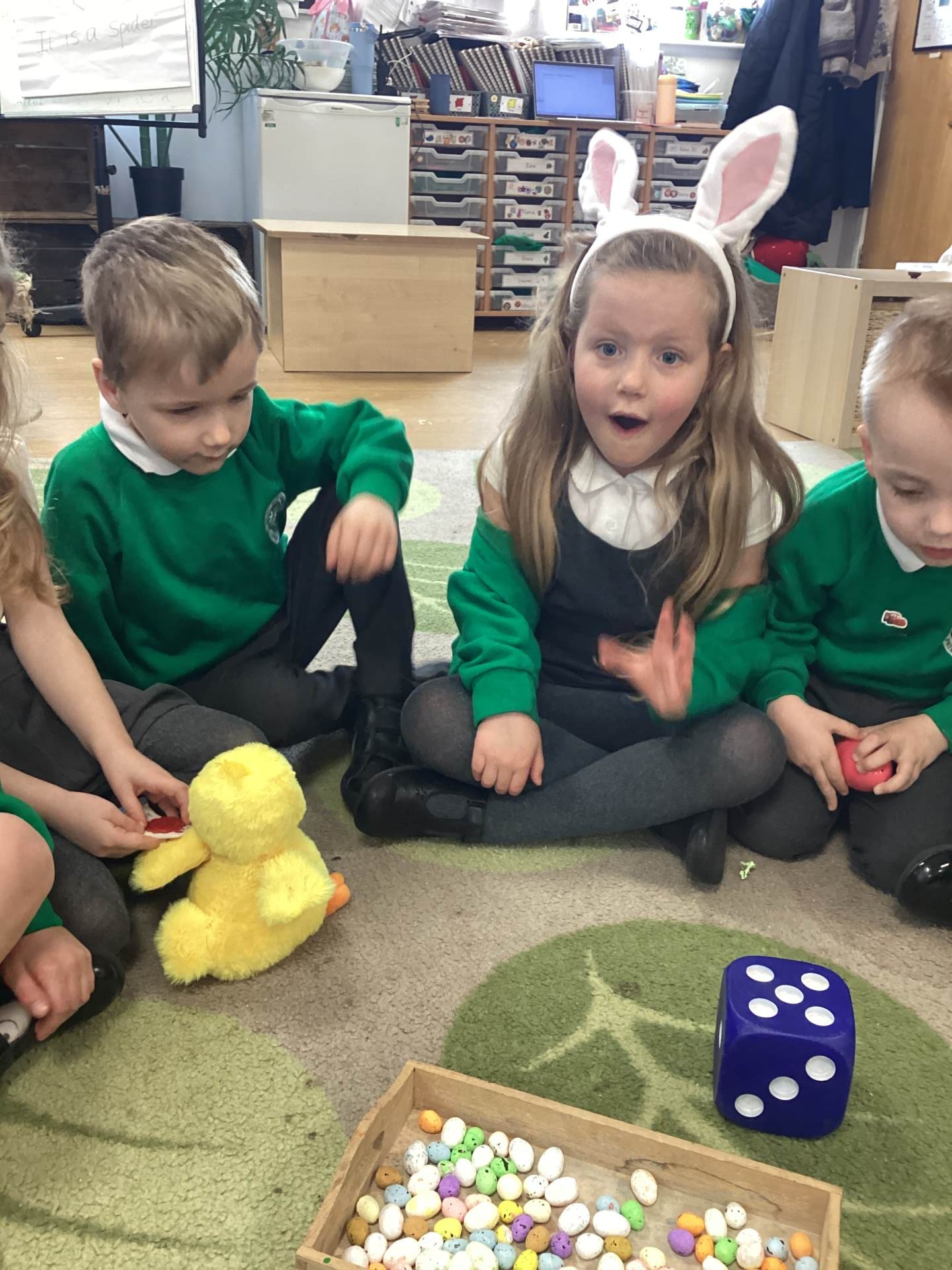 In Maths, we brought our learning to life using bunnies, chicks, and Easter eggs to support our understanding. The children used colourful eggs to create repeating patterns, showing great attention to detail and creativity. We also explored the concepts of “more than” and “less than” while sharing out Easter eggs, helping to build early number skills in a fun and engaging way.