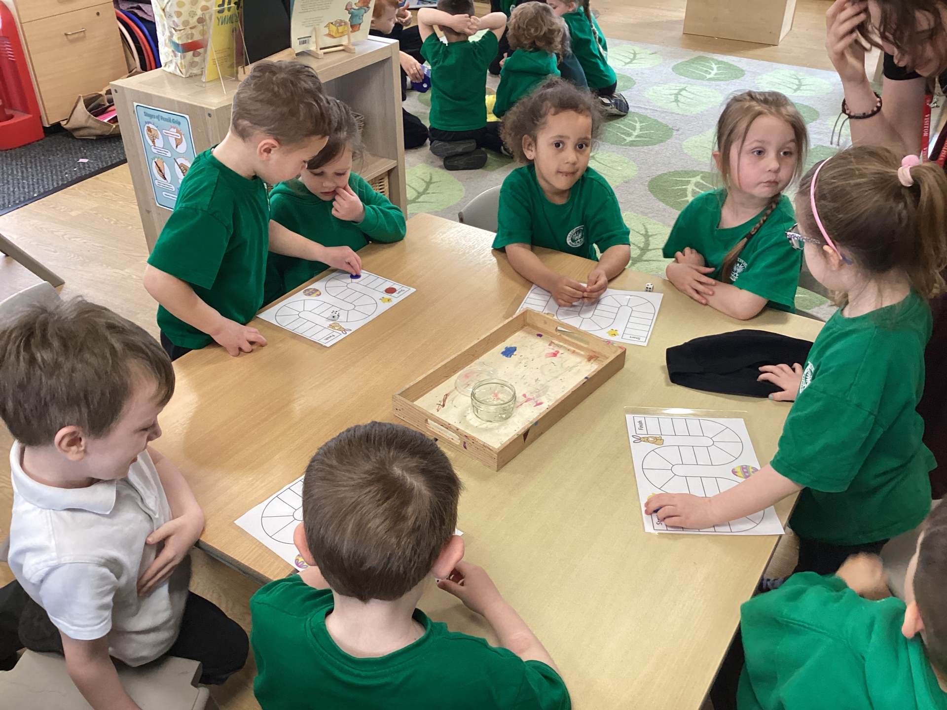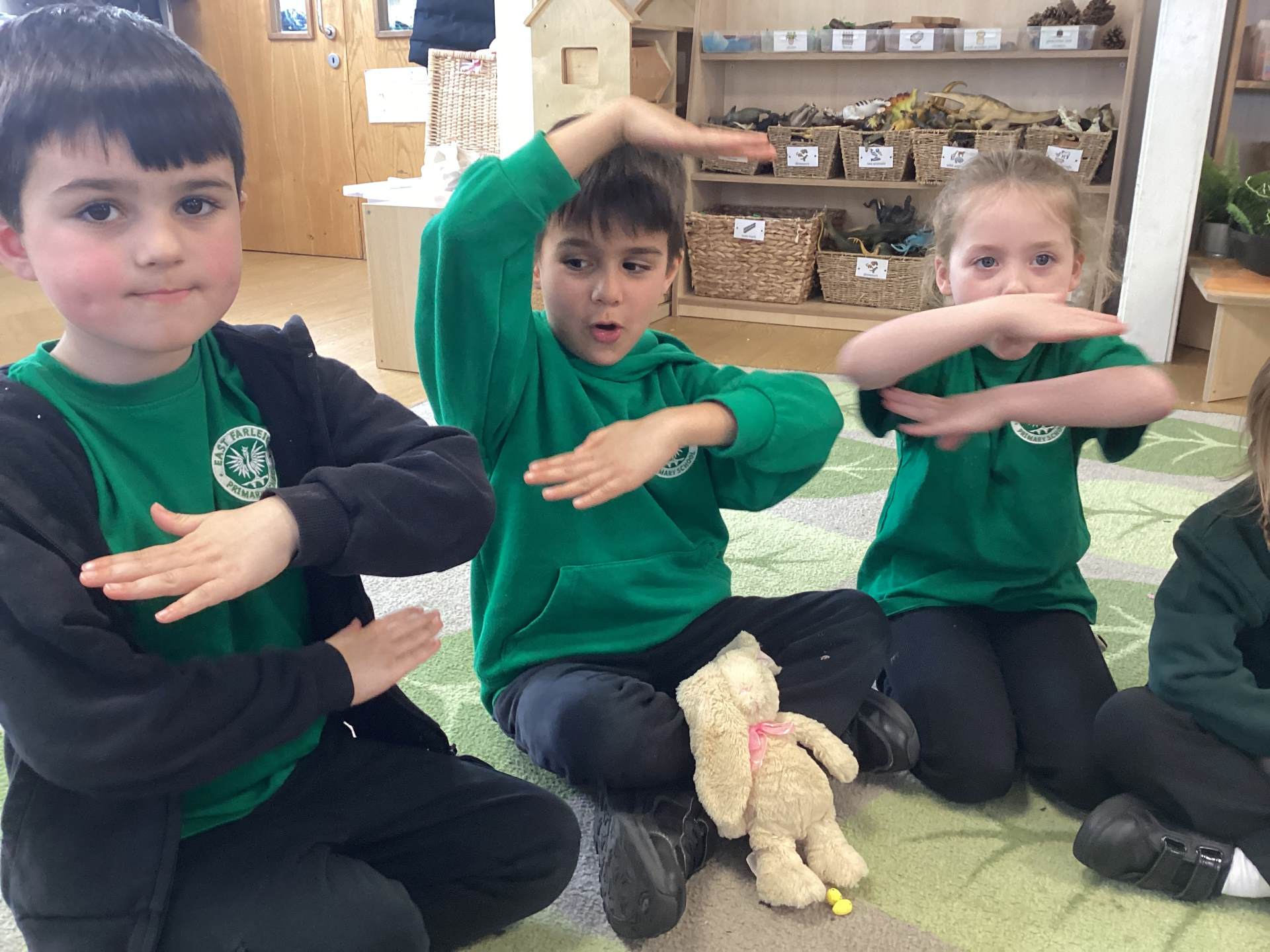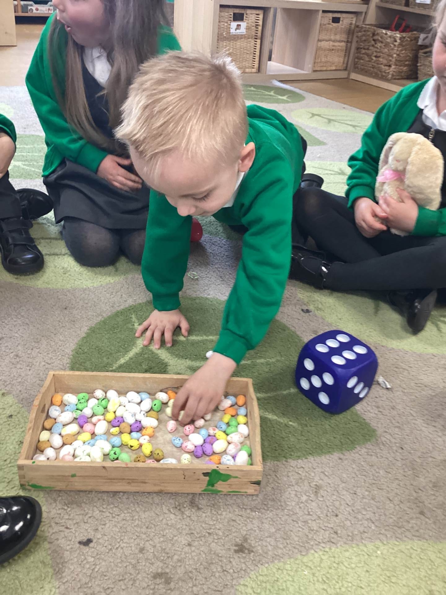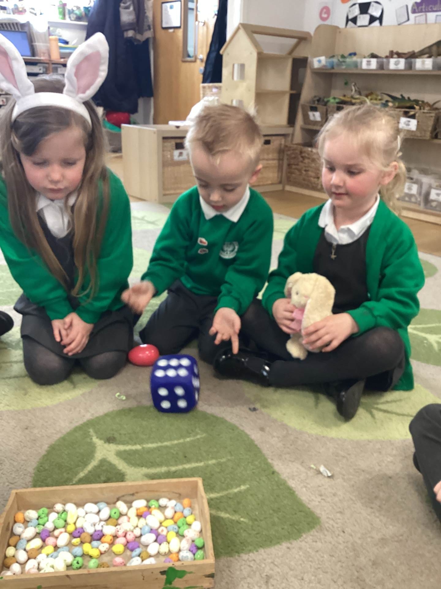 In Maths, we brought our learning to life using bunnies, chicks, and Easter eggs to support our understanding. The children used colourful eggs to create repeating patterns, showing great attention to detail and creativity. We also explored the concepts of “more than” and “less than” while sharing out Easter eggs, helping to build early number skills in a fun and engaging way.