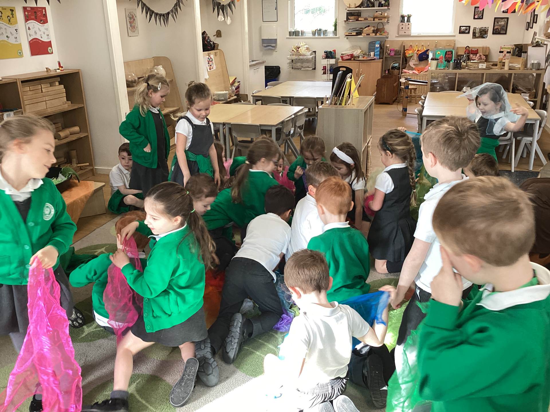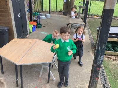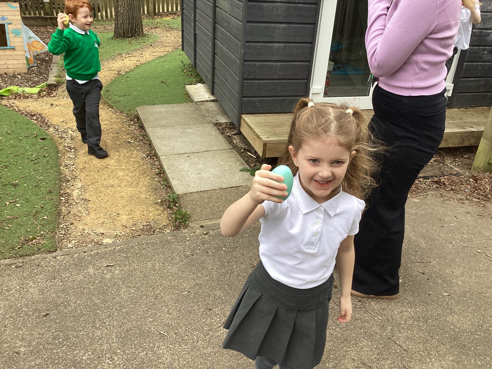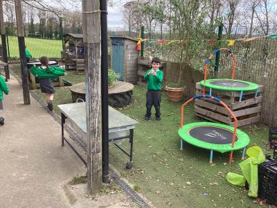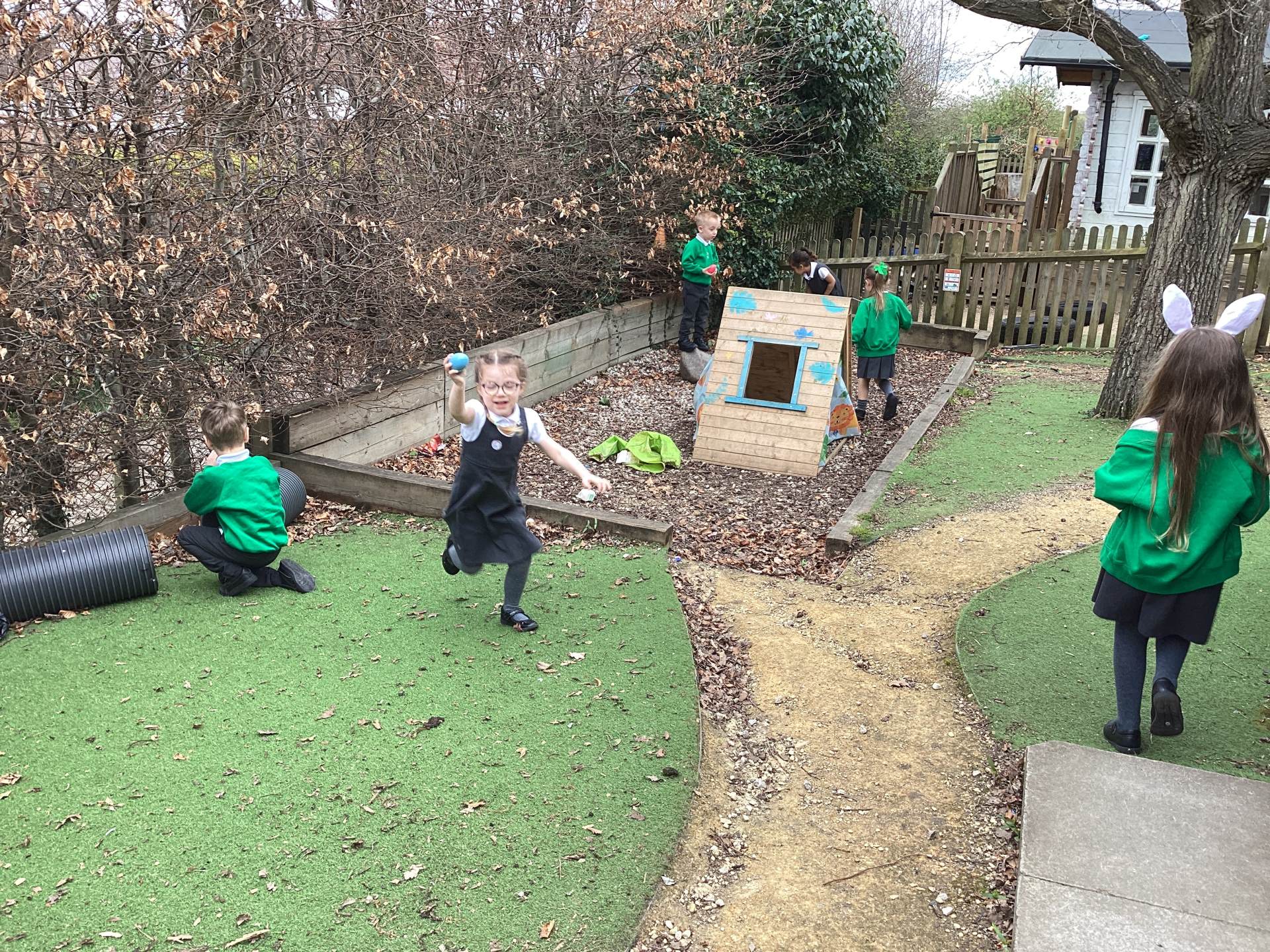 One of the most exciting moments of the week happened when we returned from PE on Monday to discover a beautiful gift and a letter waiting for us in the classroom—it had been left by the Easter Bunny! The letter asked the children to write back with their guesses about what might be inside the mysterious gift, and this became a focus for our writing throughout the week. The excitement built each day until Thursday, when we finally opened it together. To our surprise, no one had guessed correctly! Inside was a puzzle, which we worked together to complete, revealing the message: “It’s time for an egg hunt!” We rushed out into the garden where plastic eggs were hidden all around. The children helped one another to find an egg each and were delighted to enjoy a special Easter treat with their snack. It was such a magical and memorable surprise from the Easter Bunny!