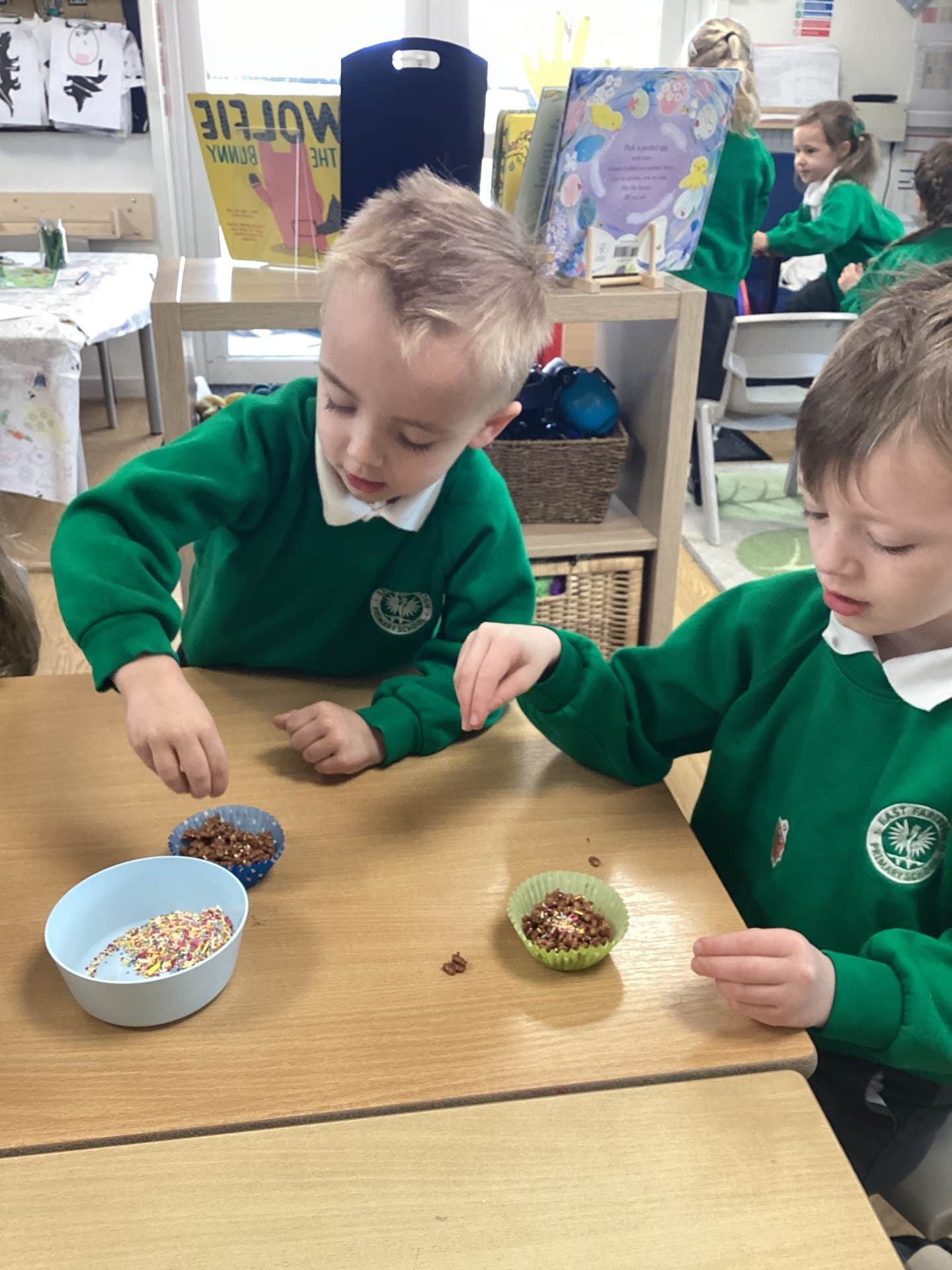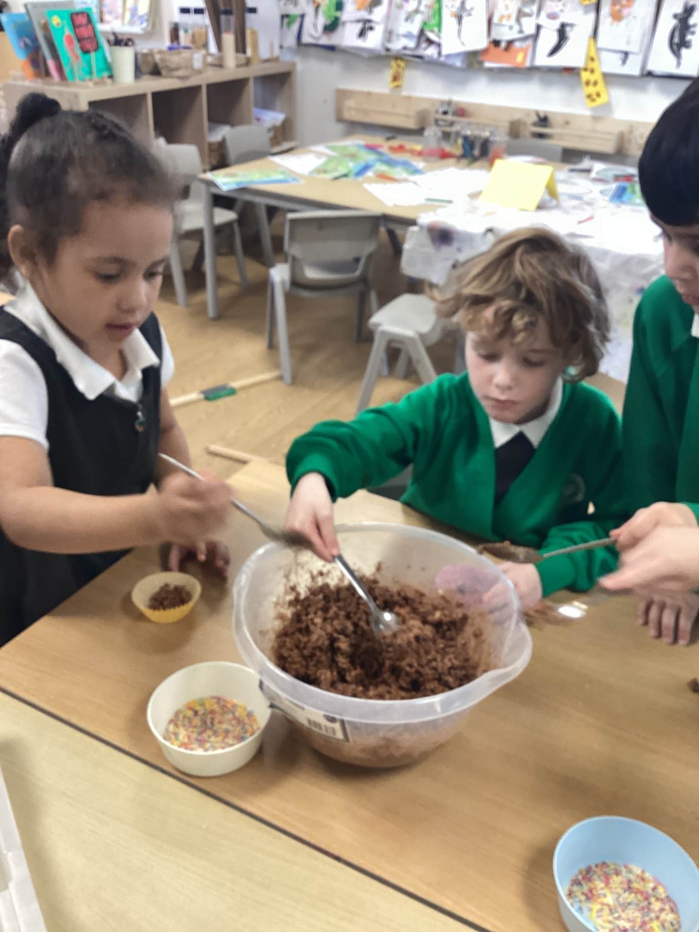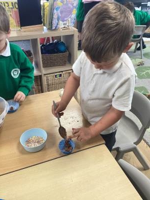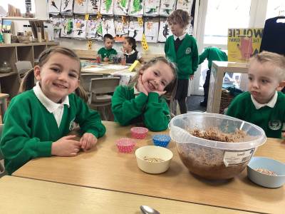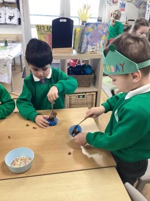 We also embraced the creative side of Easter by designing and making our very own Easter bonnets, ready for our parade with Year 1 and Year 2. The children were incredibly proud of their creations, and it was wonderful to see their individuality shine through. In addition, we have been busy practising our song, Flowers in the Rain, which we performed at the church on Thursday with great enthusiasm. Finally, we couldn't let Easter week pass without a little bit of chocolate, the children enjoyed making their own chocolate nest cakes to take home this week, a sweet treat to reward them for all their hard work this term.