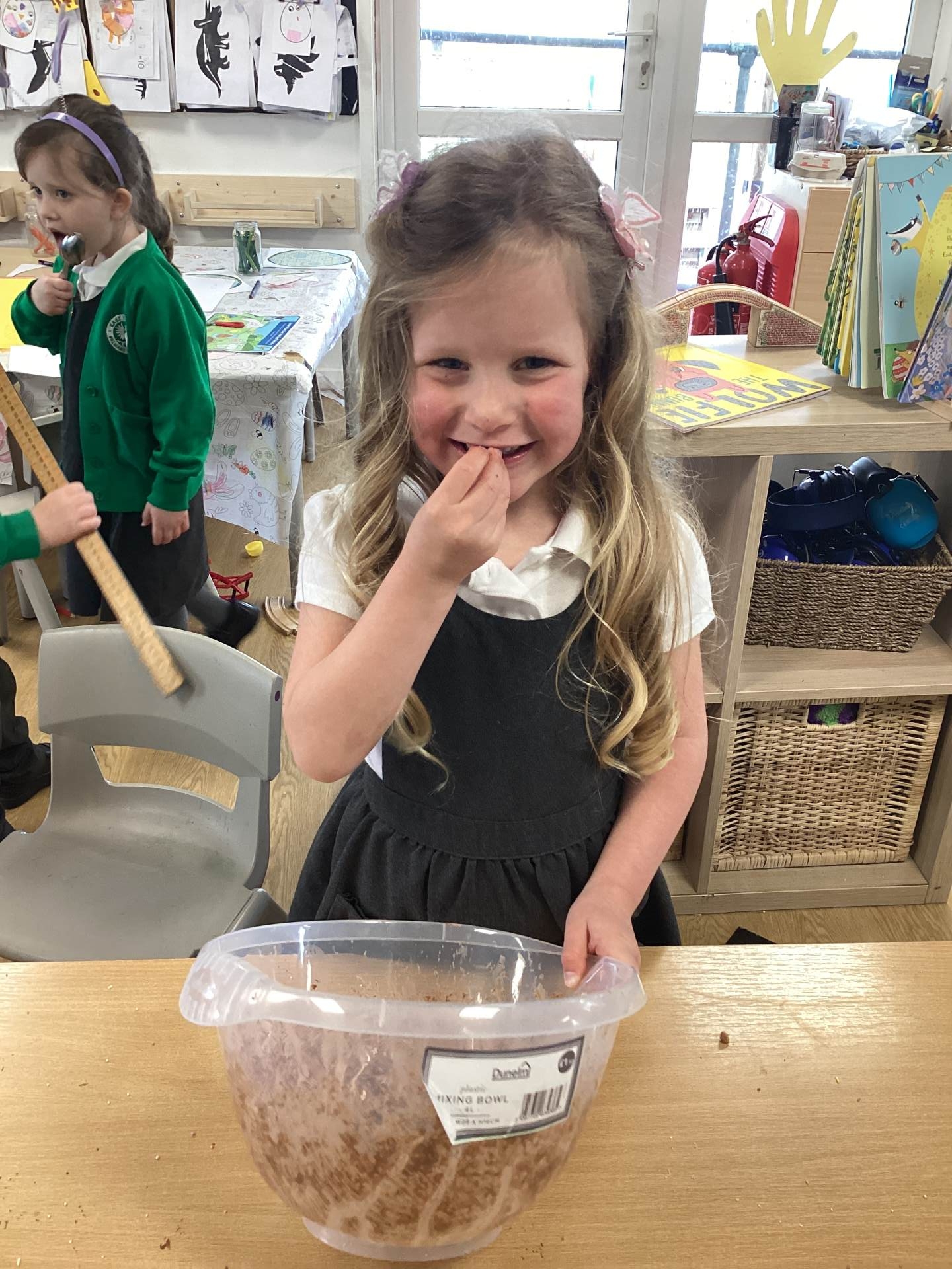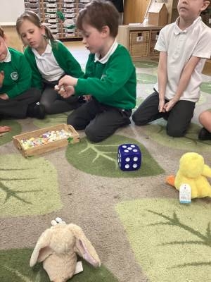 In Writing, we focused on the story Wolfie, a humorous and heartwarming tale about a baby wolf dressed as a bunny. At first, his new big sister Dot is convinced he is trying to eat her, but it soon becomes clear that he simply wants to be her loving little brother. The children thoroughly enjoyed the story and took part in a lively debate about Wolfie’s true intentions, sharing their ideas and listening carefully to one another.
