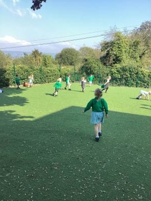 We have been getting outdoors and soaking up the sunshine in the EYFS over the last week. We have been working on our gross motor skills on the climbing equipment and spent time on the astro doing a circle time where we spoke about our senses and all the wonderful things we could see, hear, smell and feel in nature. We have also been loving our outdoor area, making some dinosaur shadow art, constructing obstacle courses and of course cooling down in the water tray!
