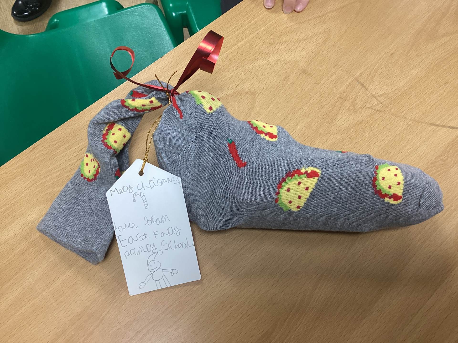 Over the term, we have worn Christmas jumpers and eaten a delicious Christmas dinner with our friends! We decorated our classroom and created a gingerbread garland! We even gave back to our community by helping the homeless. We filled socks with essential items to be distributed by the charity Medway Street Angels, tagging each one with a Christmas message.