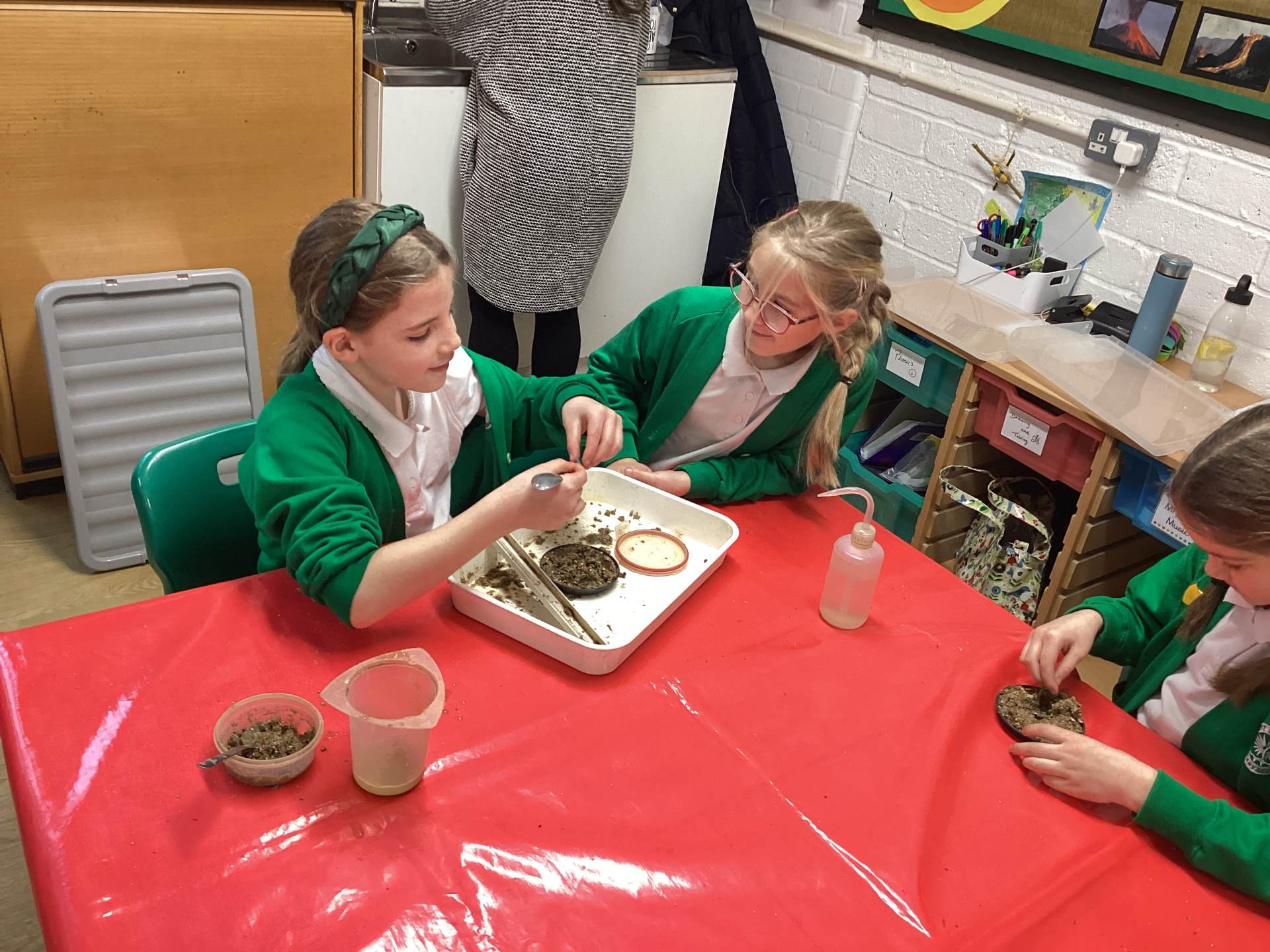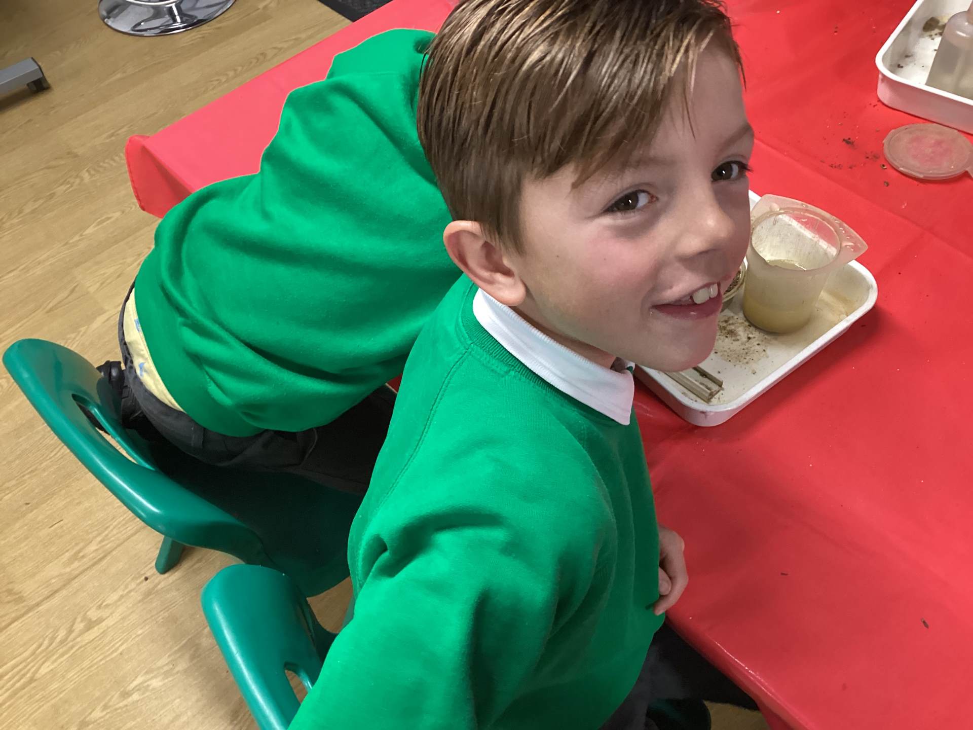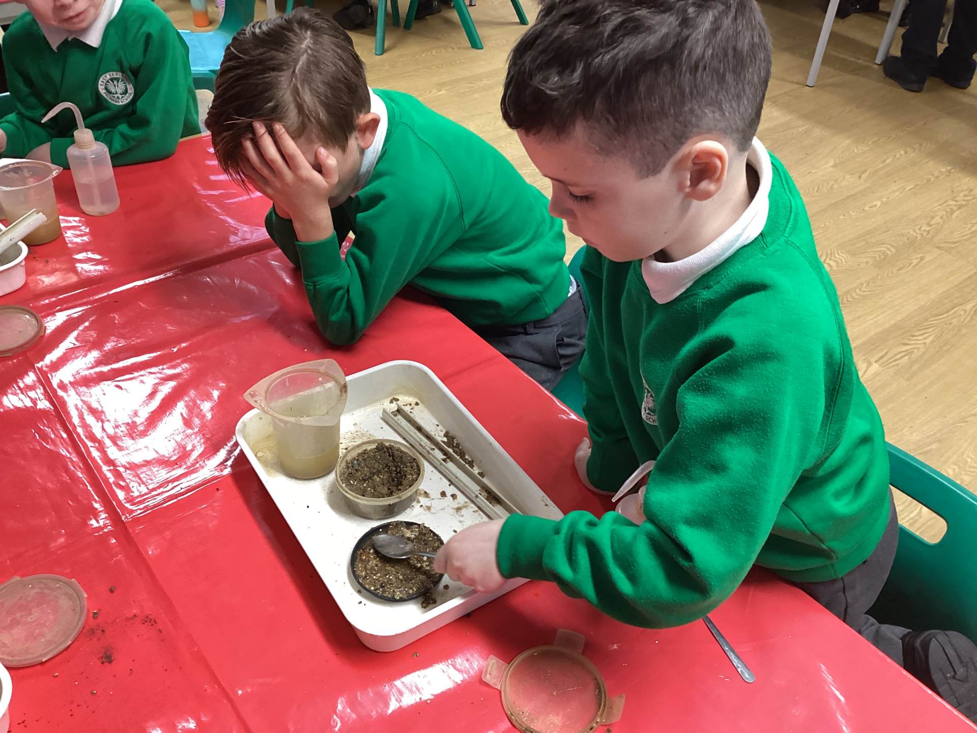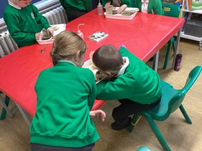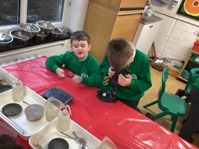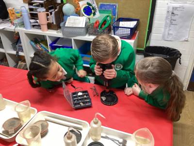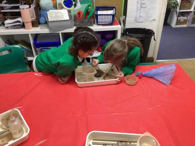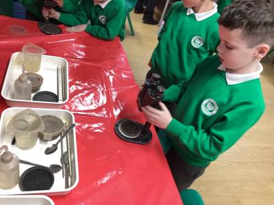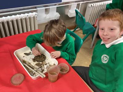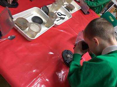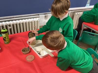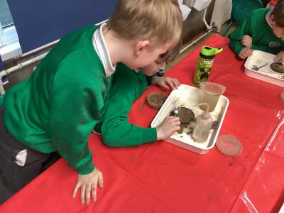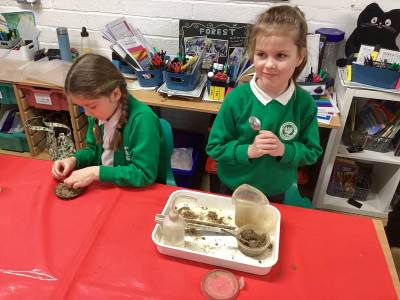 Then we had some time to experiment with soil. We looked at soil under a microscope and had to try and work out what it is made up of. Turns out - it's lots of dead things, yuck!