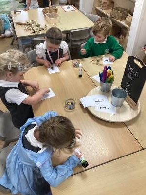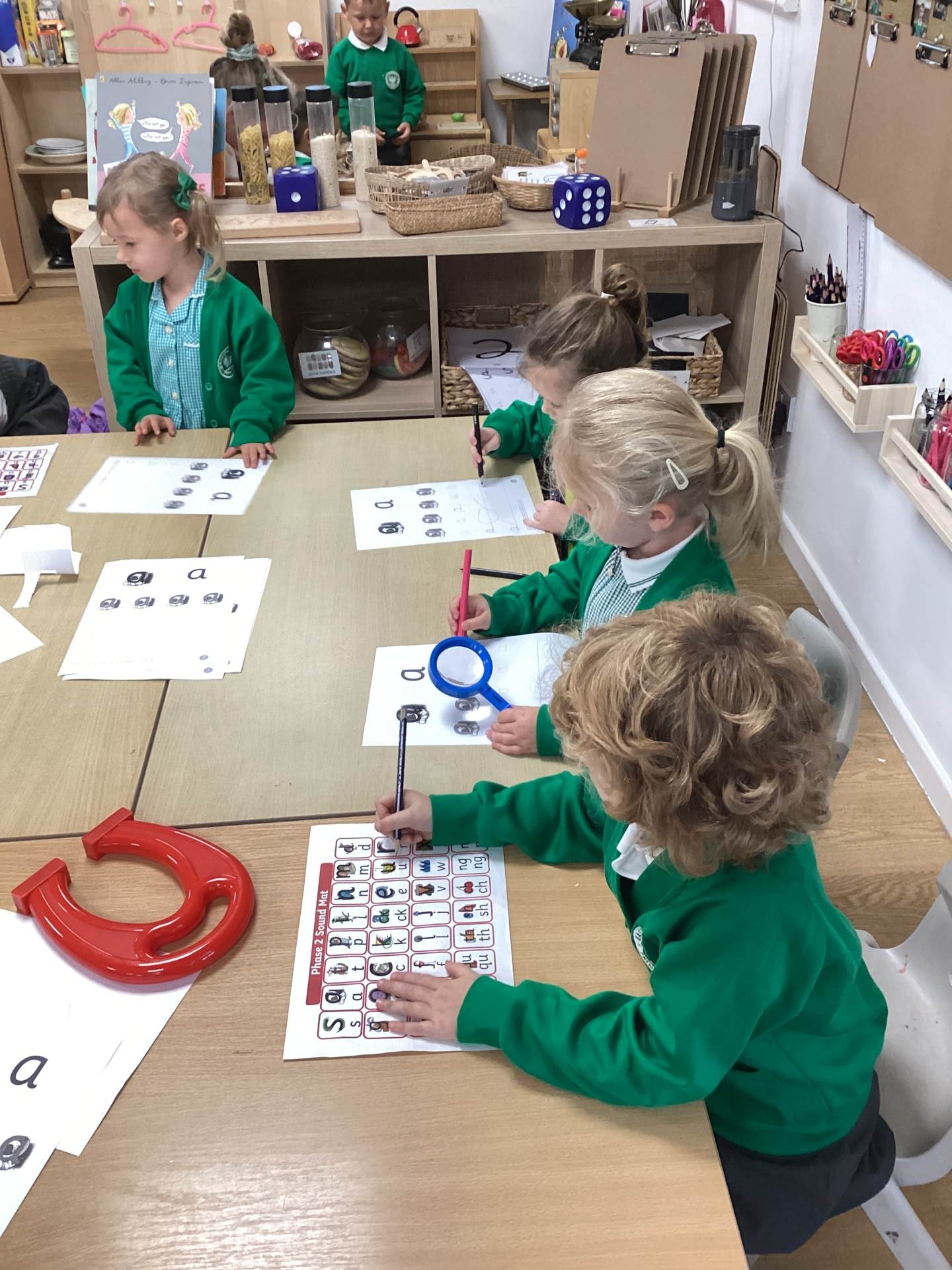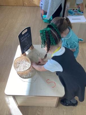 While the children are learning their initial sounds we will set up a number of activities to promote the recognition of the grapheme (what a sound looks like when it's written down) and the the letter formation. These activities also support the development of the children's fine motor and concentration skills. Please see a few examples of these below: