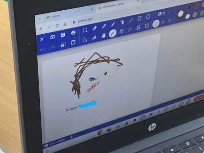 Using a paint app, the children used the drag and drop function to create a text box and type their names. They then practiced the mouse skills we learnt last week to have a go at creating their own self portraits. This is no mean feat as they are having to use a mouse pad function which many of them have not used before!