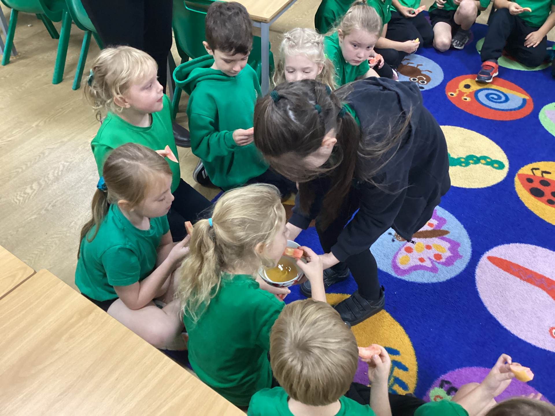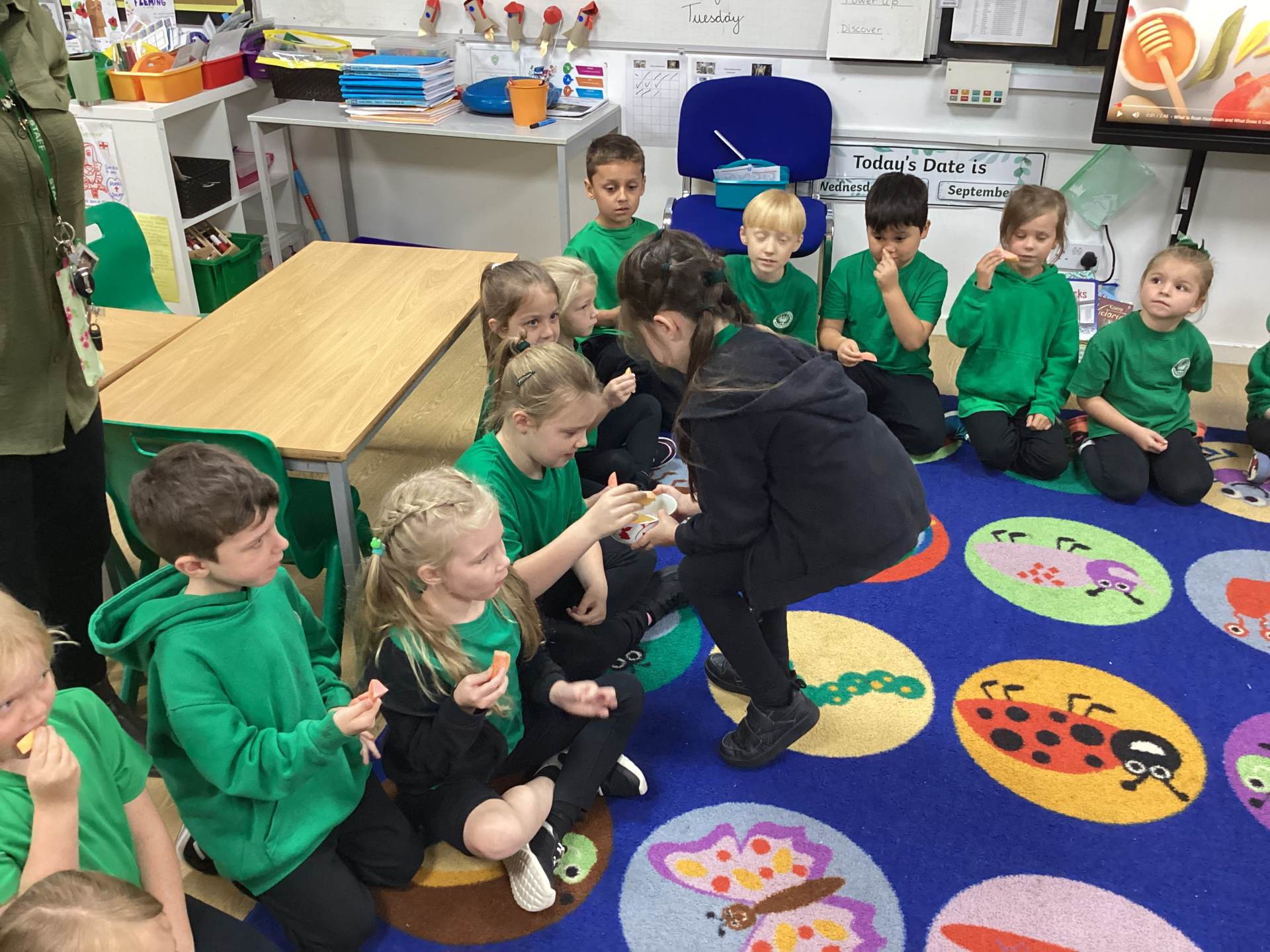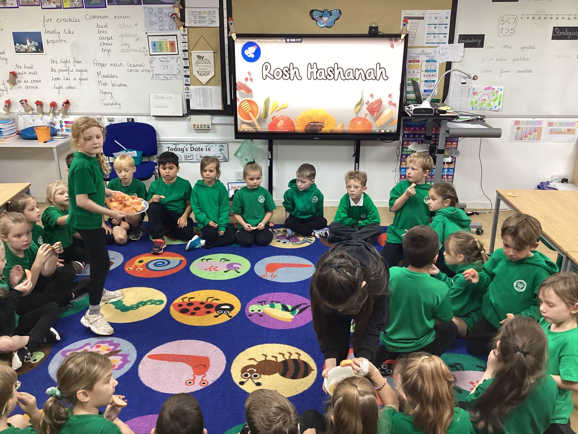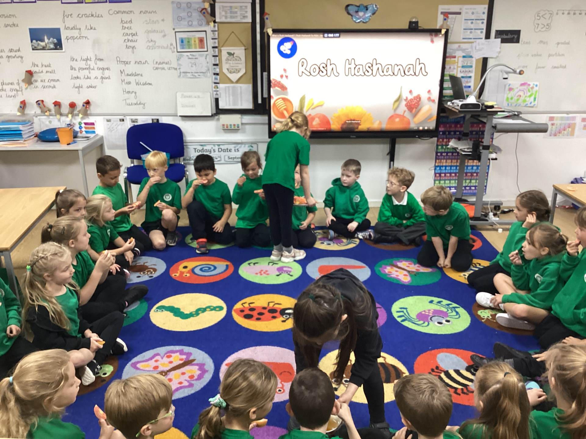 We were lucky enough to have one of our pupils tell us all about the Jewish New Year, Rosh Hashana. She explained that it was ending today, Wednesday 24th September. We dipped apples in honey to wish and hope for a sweet new year. What a wonderful multi cultural experience for us all.