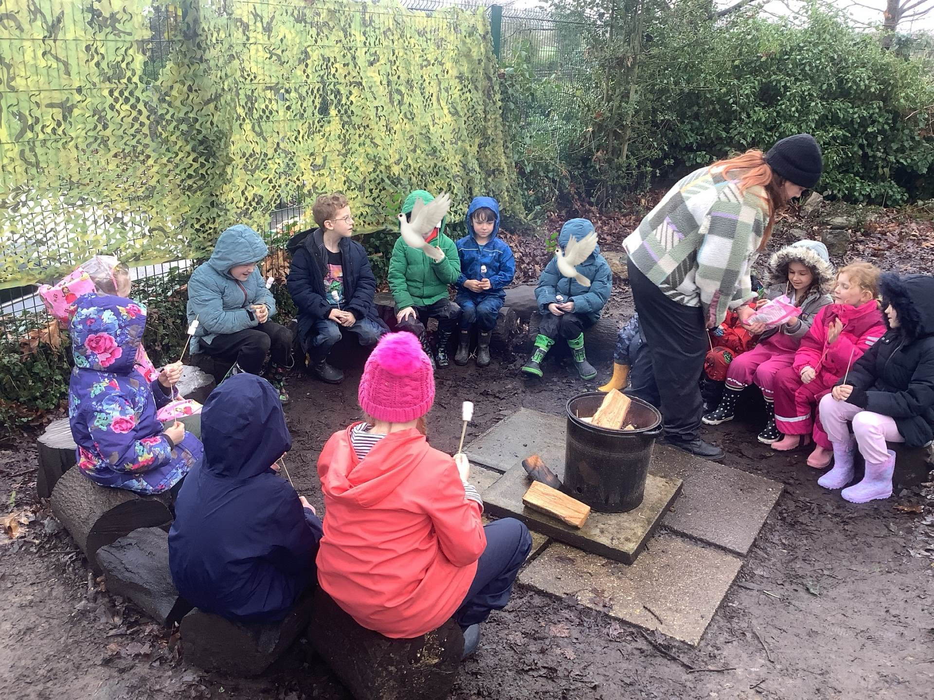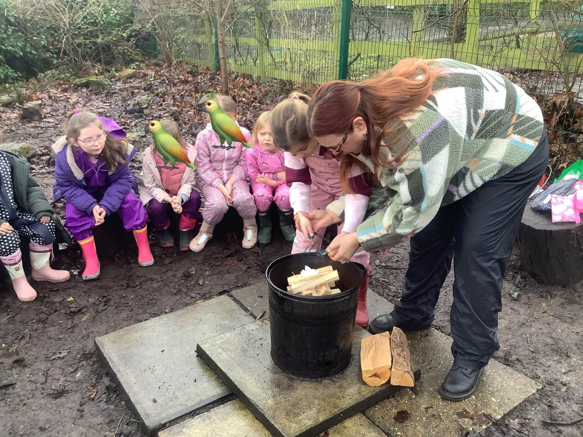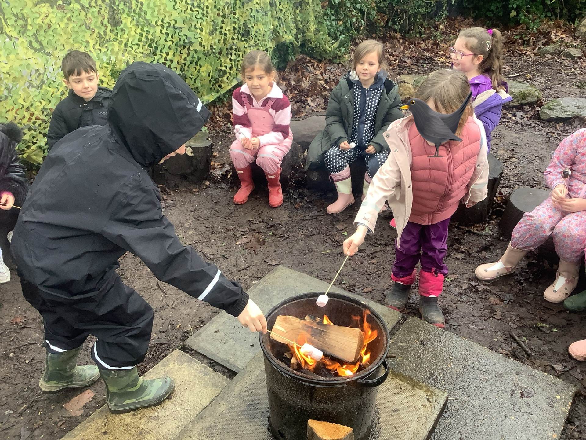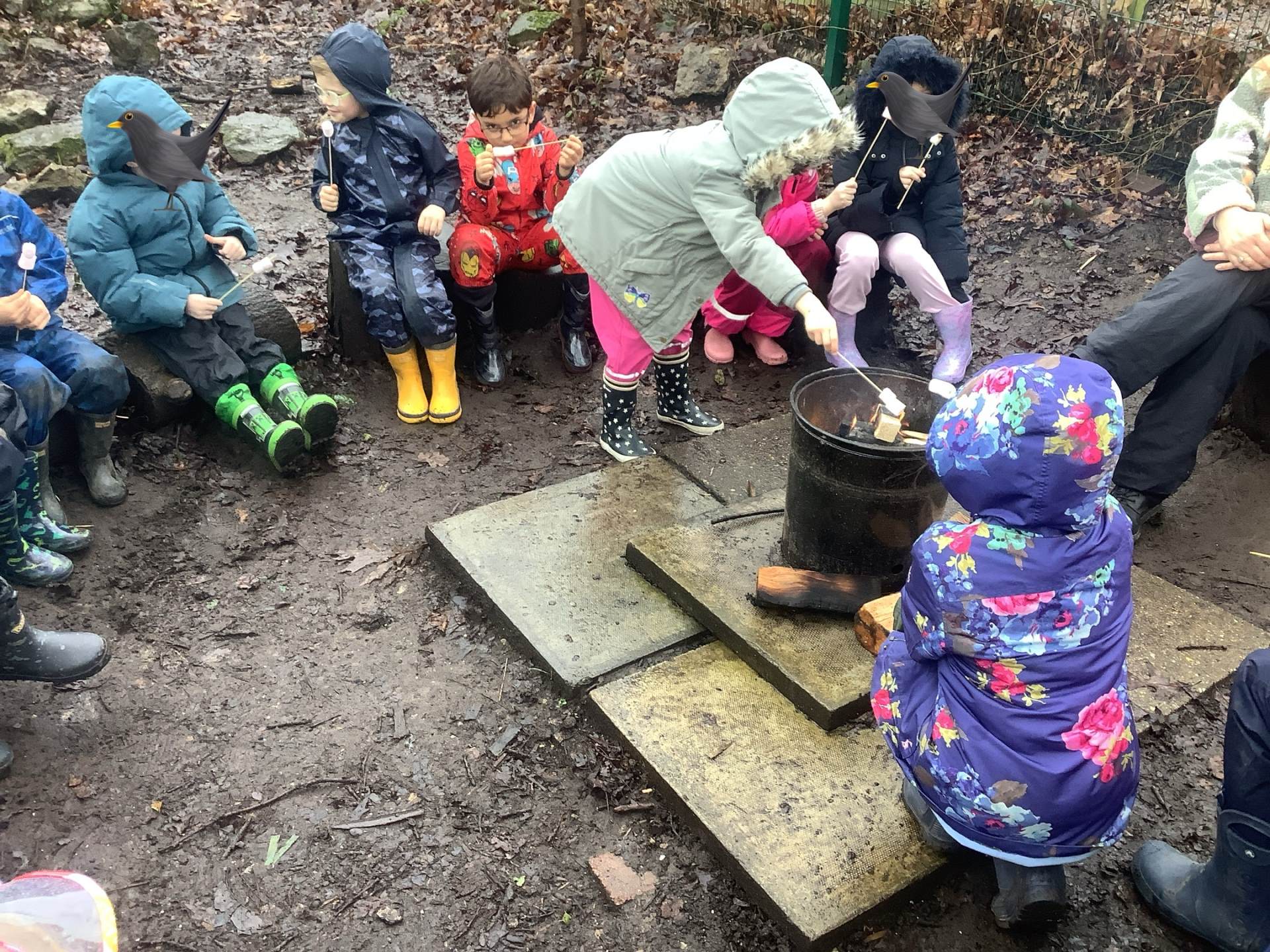 After all the excitement of watching and hearing birds the children helped me make a fire and we toasted some yummy marshmallows!