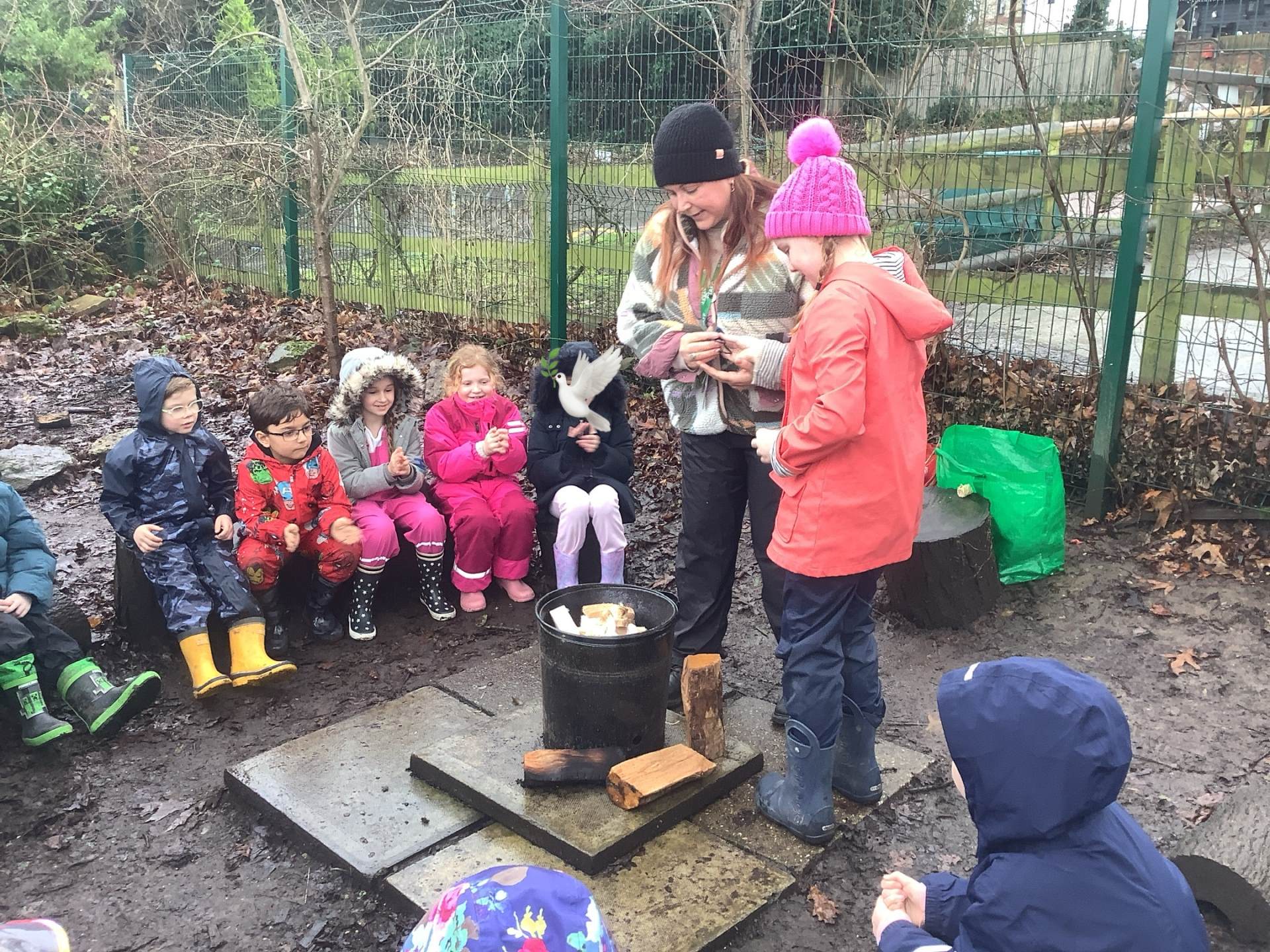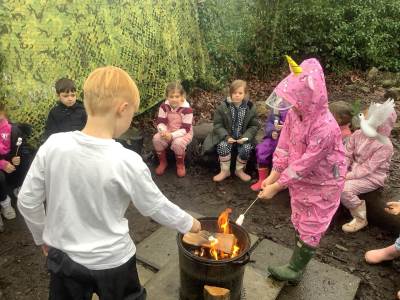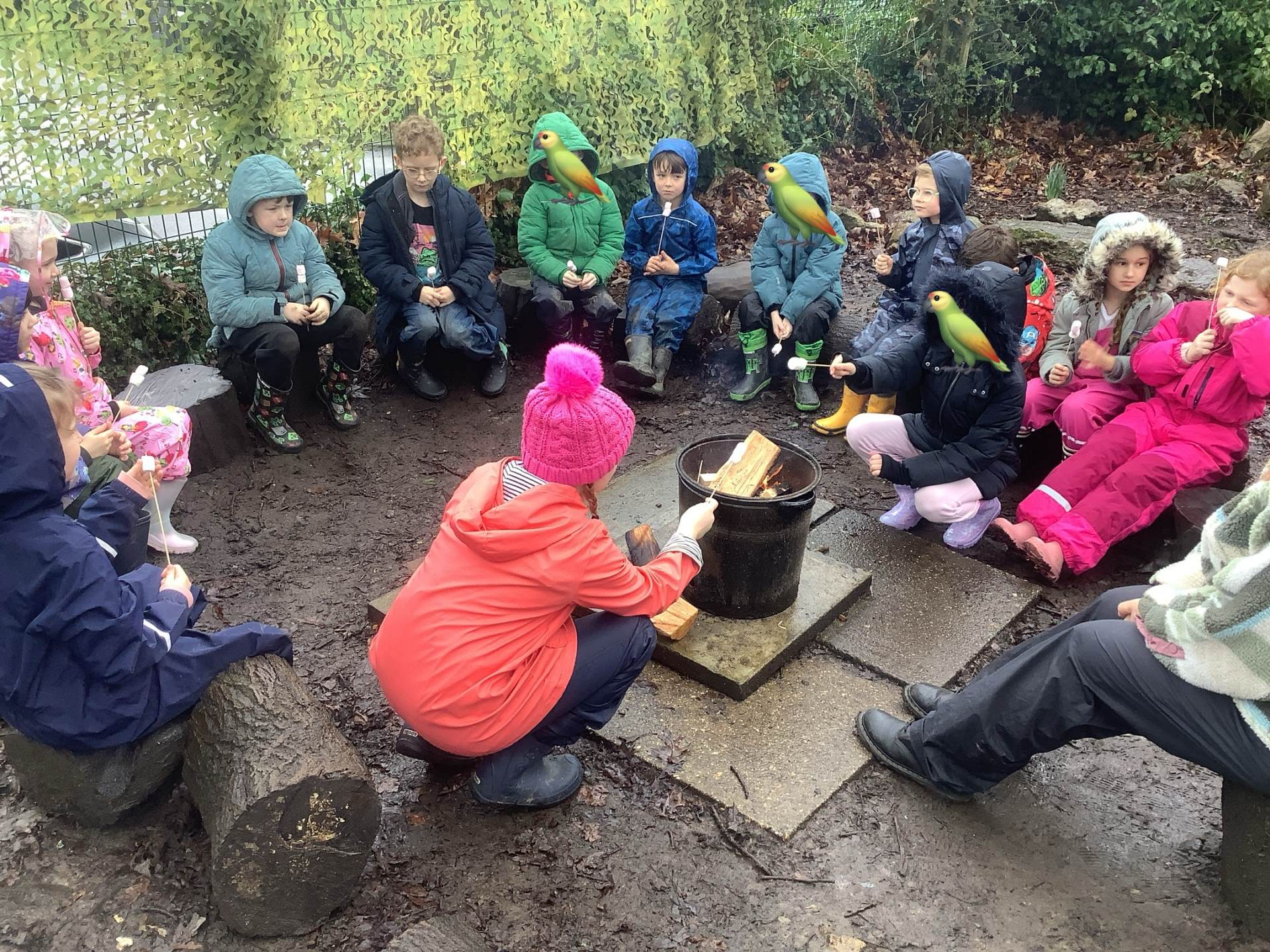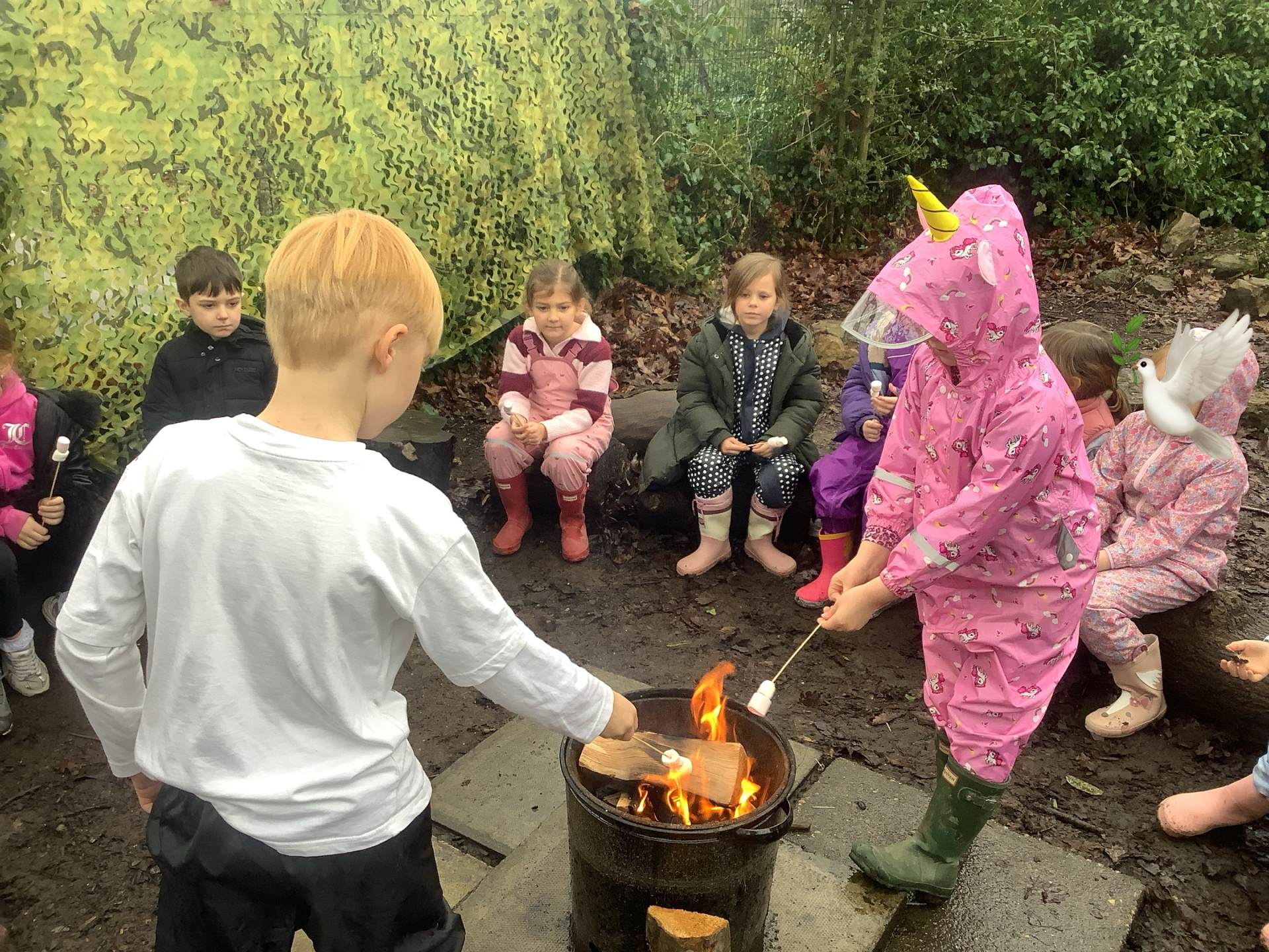 After all the excitement of watching and hearing birds the children helped me make a fire and we toasted some yummy marshmallows!