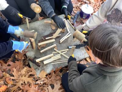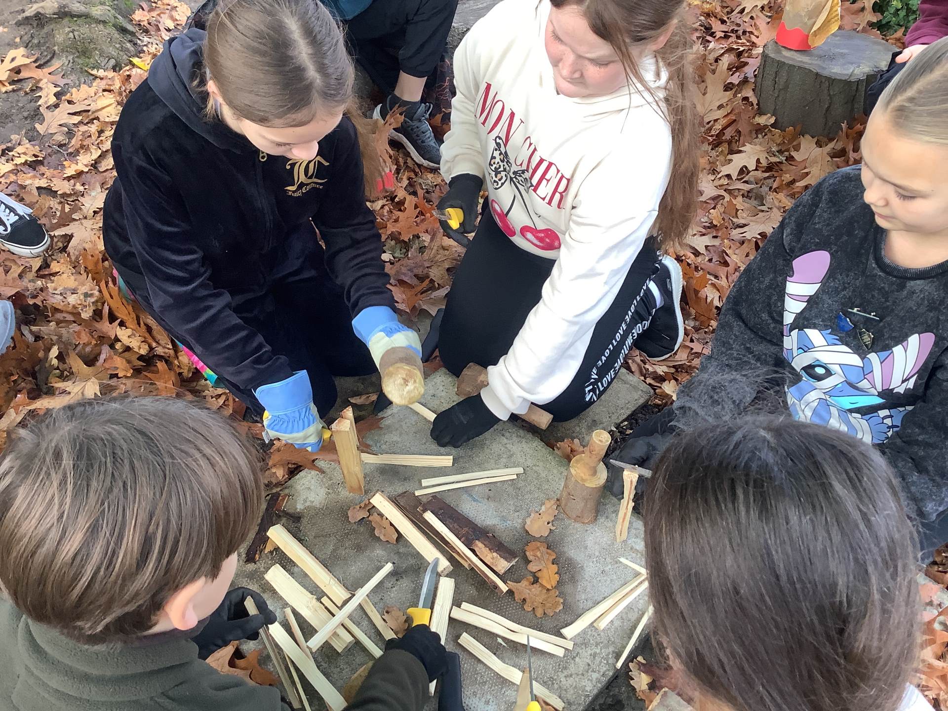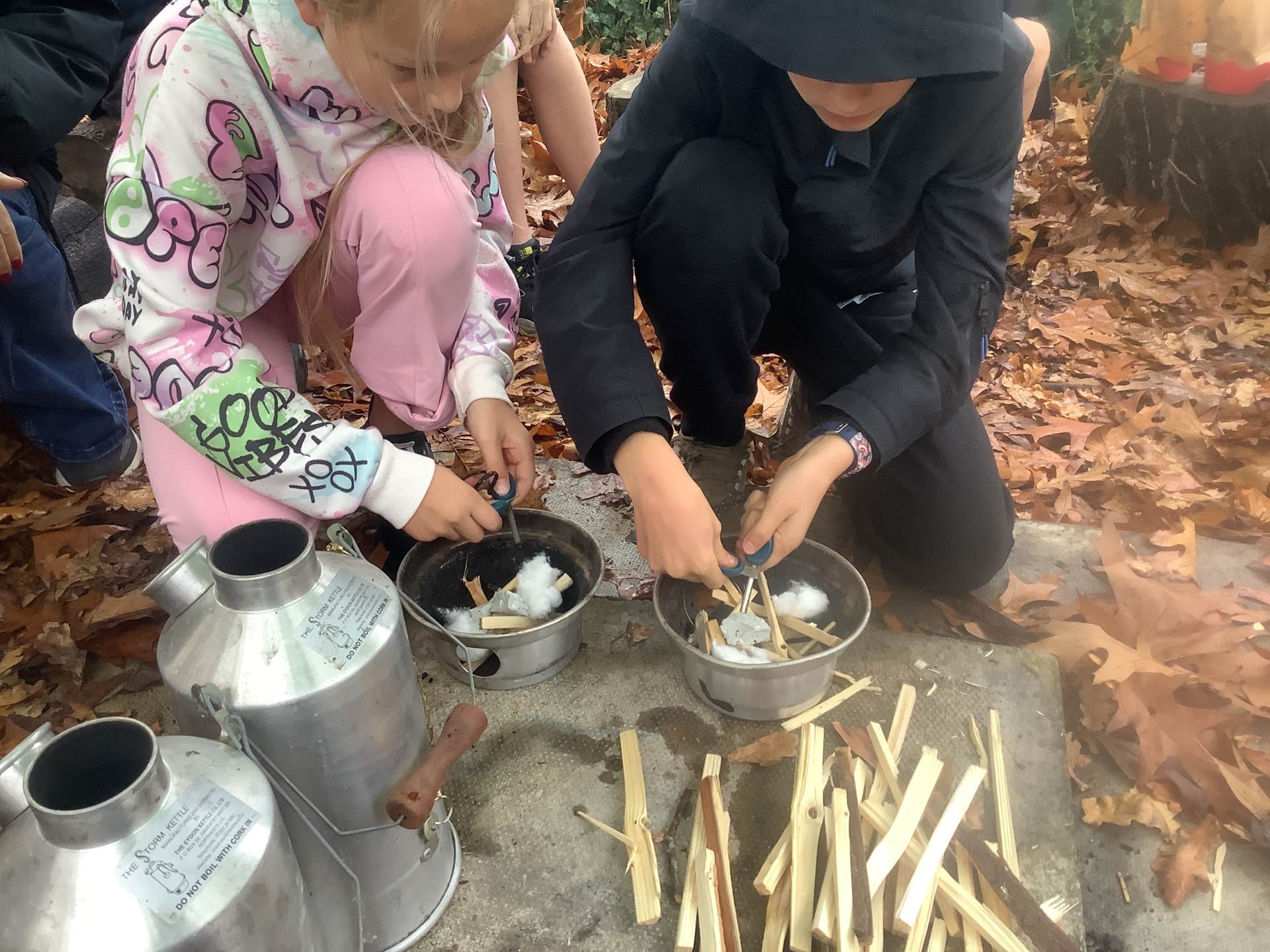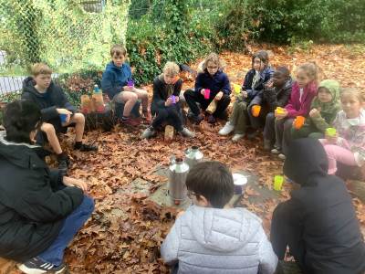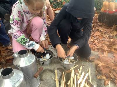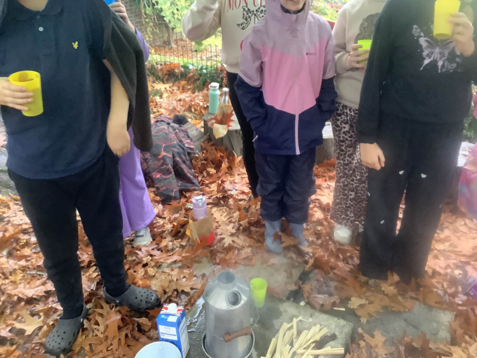 After our activity the children helped me making the fire. They we responsible for making it. They did a brilliant job. Once the fire was lit we used our Kelly kettles to make some yummy hot chocolate.